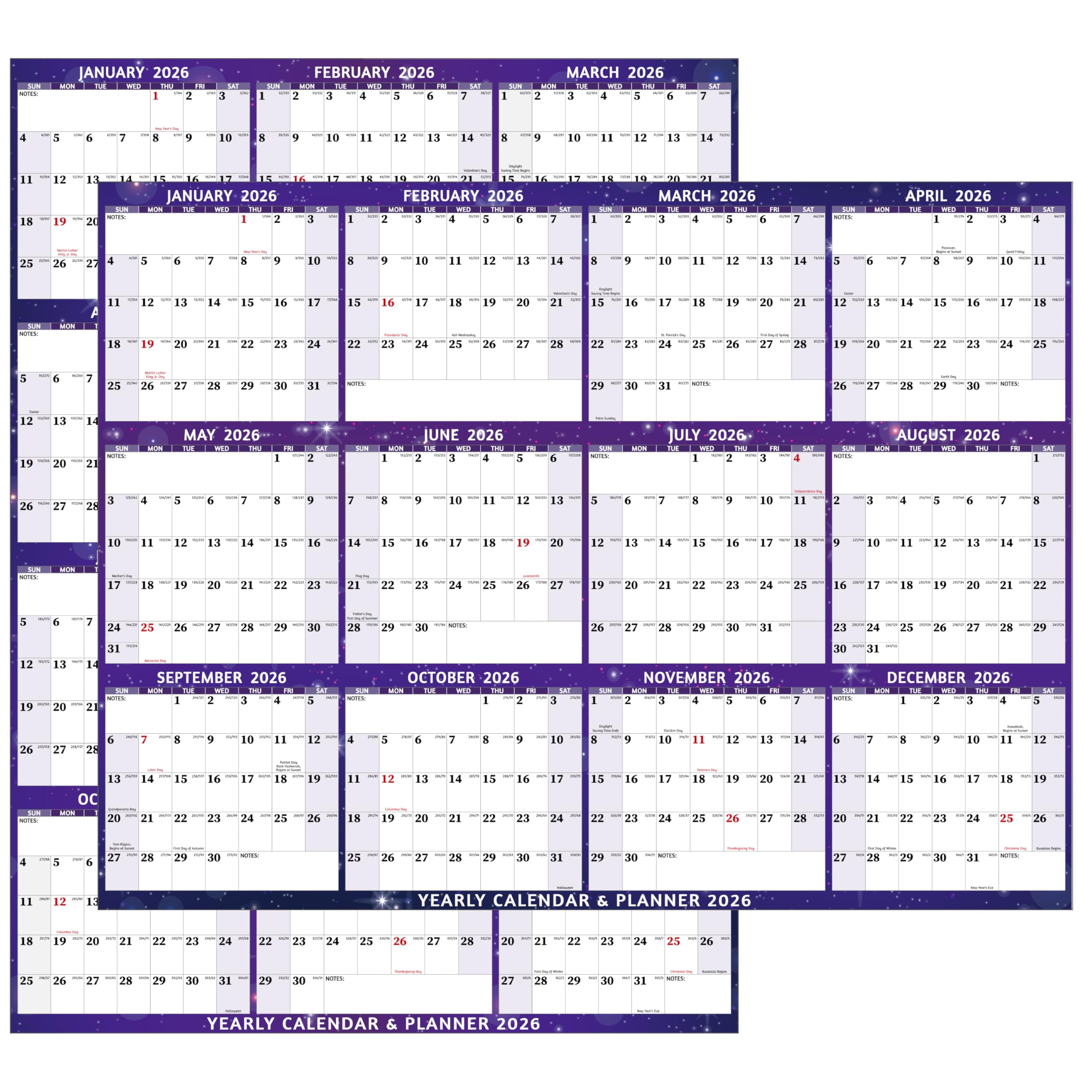 YEARLY CALENDAR 2026 PLANNER – Each full year wall calendar dry erase offers large day blocks (Vertical: 1.97" x 1.53", Horizontal: 1.93" x 1.54") and notes section for daily scheduling. Highlight weekends backgrounds to make your weekday and weekend plans clearer. Major holidays included.
