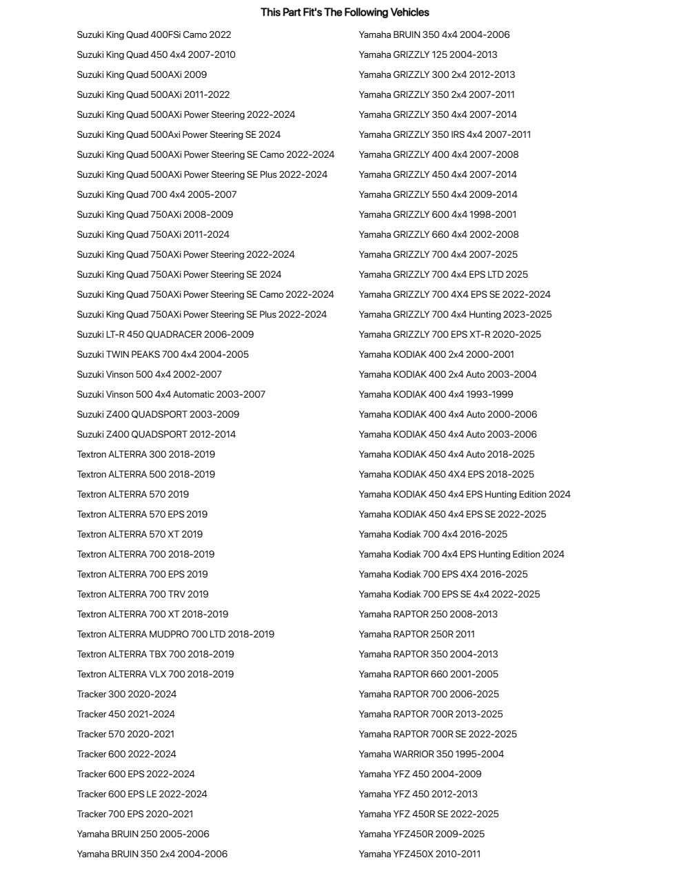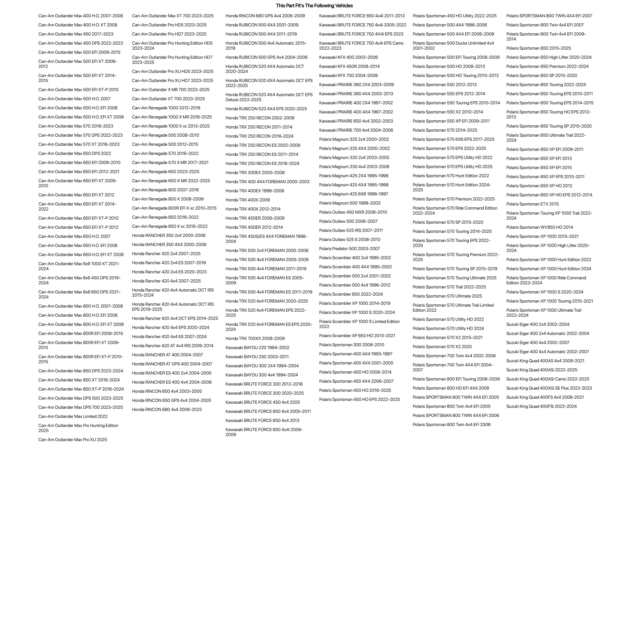 • The kit is intended for ATV's with existing headlights (No headlight included in kit).