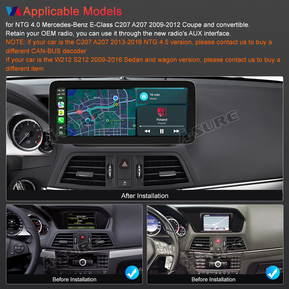 For NTG 4.0 Mercedes-Benz E-Class C207 A207 2009-2012 Coupe and convertible.