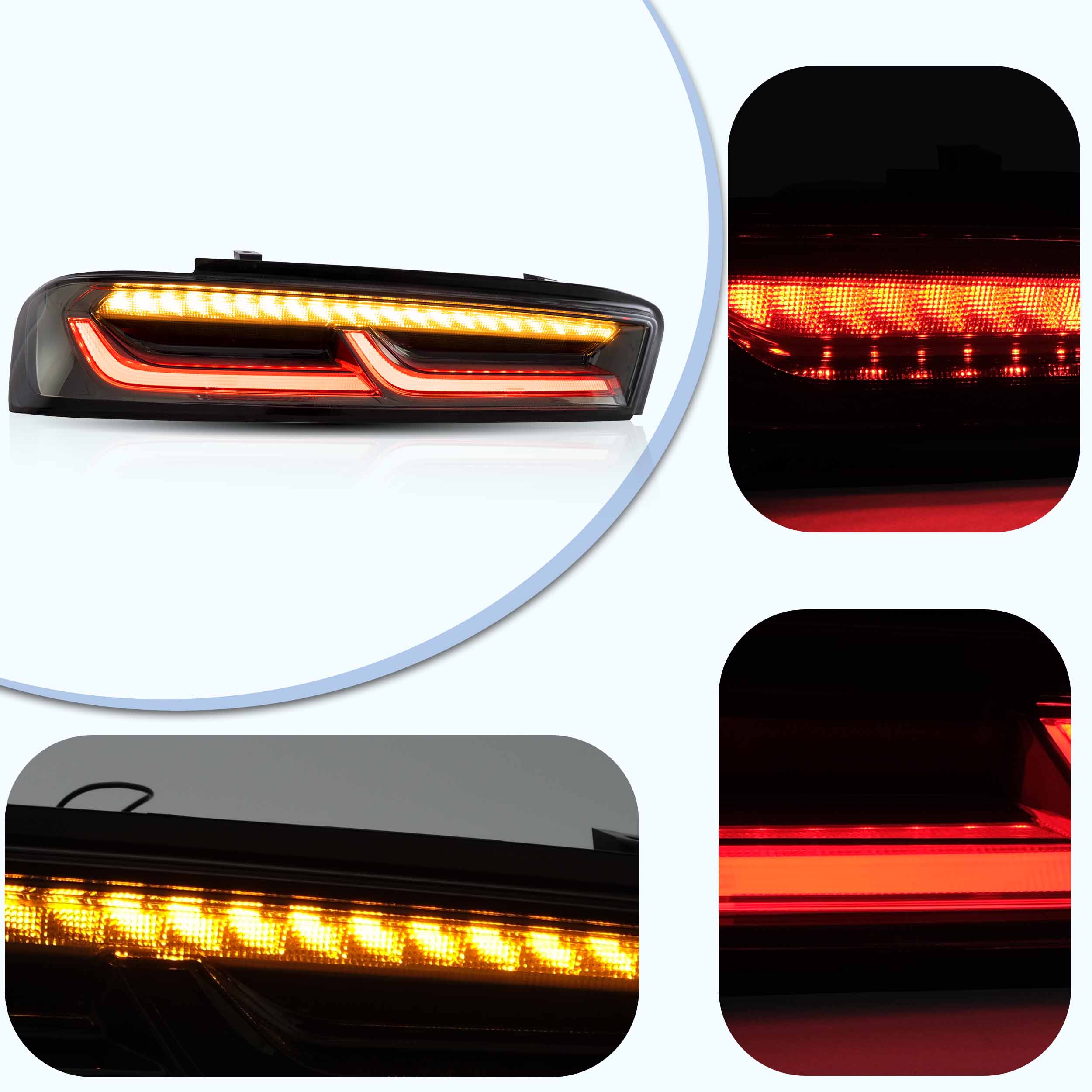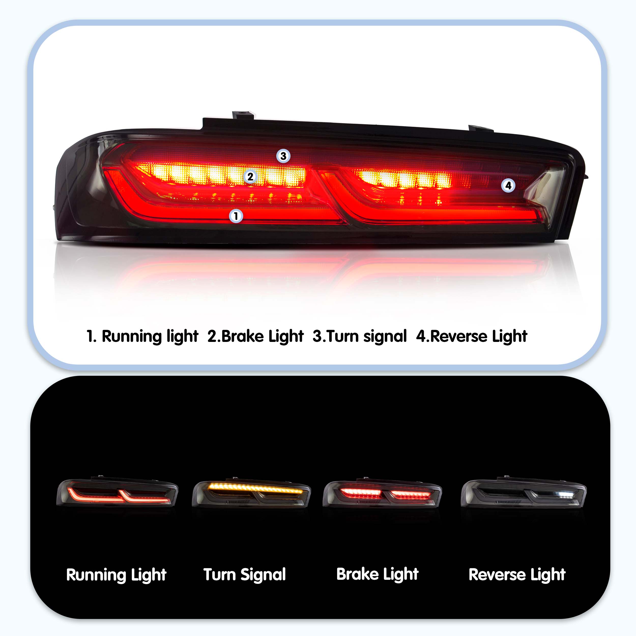 ☑ Fonctions : Feu de route à LED, clignotant séquentiel à LED, feu de freinage à LED, feu de recul à LED.