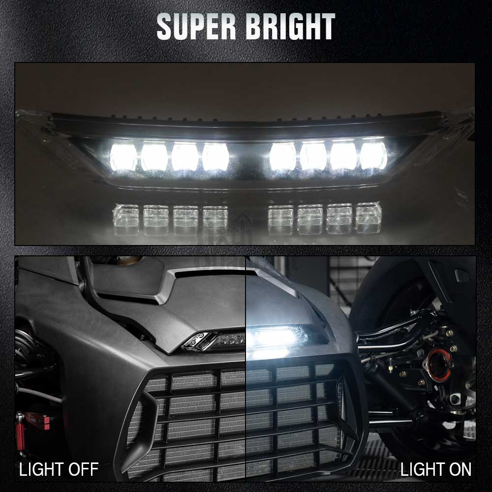 The Headlight use the newest LED technology , brighter than other similar headlights kit,but lower power consumption,more than 30000 hour lifespan. Provides superior illumination over factory one, Light has good spread on the beam and lights the road nicely,can achieve excellent road coverage ,for optimal visibility and better safety during treacherous,dark nights. You can drive freely in the dark without worrying about driving problems caused by the darkness of the road.
