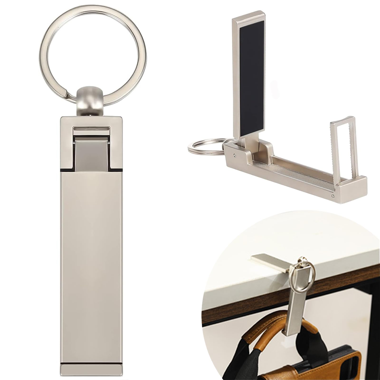 EASY-TO-CLIP Carabiner:The desk backpack hook is combined with a Carabiner, easier to hang with handbag,purse.It comes with a keyring that you can easily attach to your key holder and key organizers or key chains.