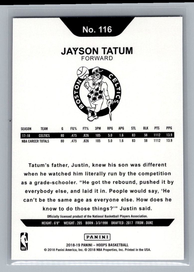 2018-19 Hoops Purple Jayson Tatum Boston Celtics #116