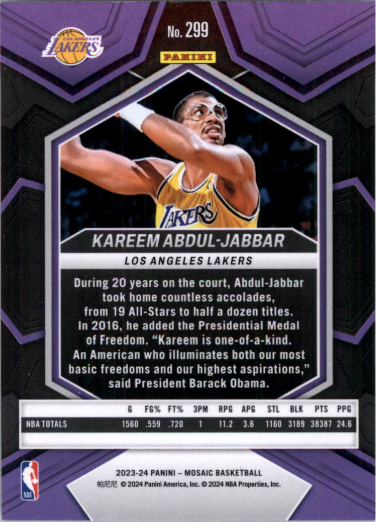 2023-24 Panini Mosaic #299 Kareem Abdul-Jabbar NBA Greats - BSK