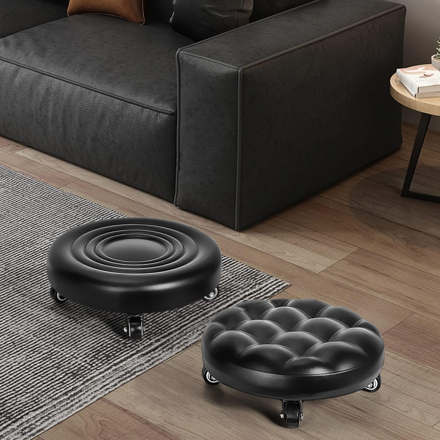 Work comfortably and move freely with this low-height rolling stool, designed for home, office, garage, or fitness use. Featuring 360° swivel casters and a thick PU leather seat, this portable stool combines durability, comfort, and convenience in one compact design.