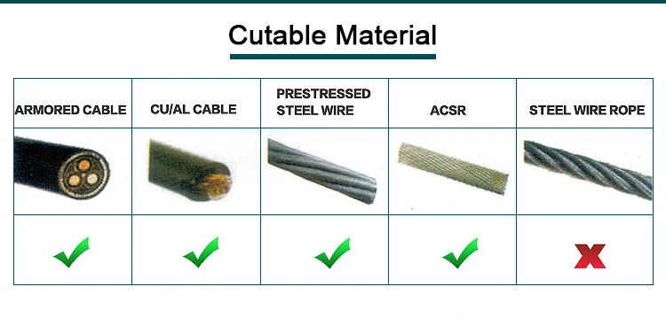 Cutting Cu/Al cables upto 3×150mm2 |