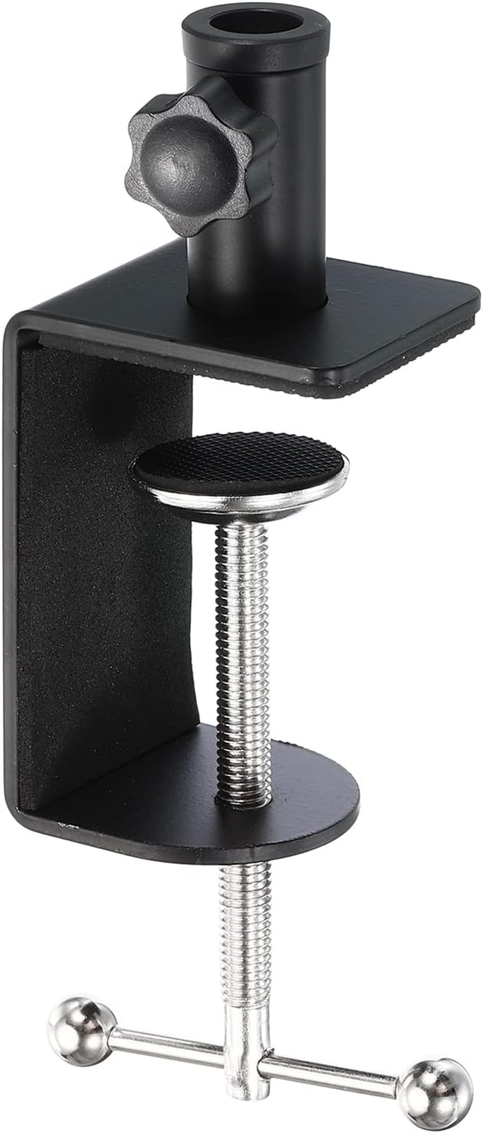 Secure your microphone, lamp, or other desktop-mounted accessories with this durable aluminum alloy C-clamp. Designed for stability and versatility, it provides a non-slip grip while protecting surfaces, making it ideal for home, office, studio, stage, or broadcast use.