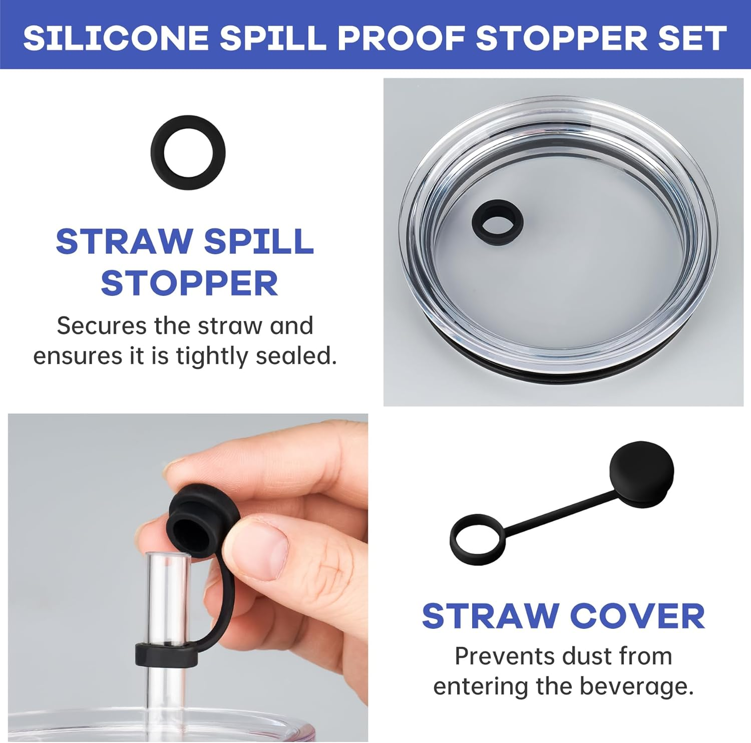Versatile Functionality: Straw covers hold straws firmly, preventing movement, while lid stoppers provide a reliable seal to maintain spill-free performance.