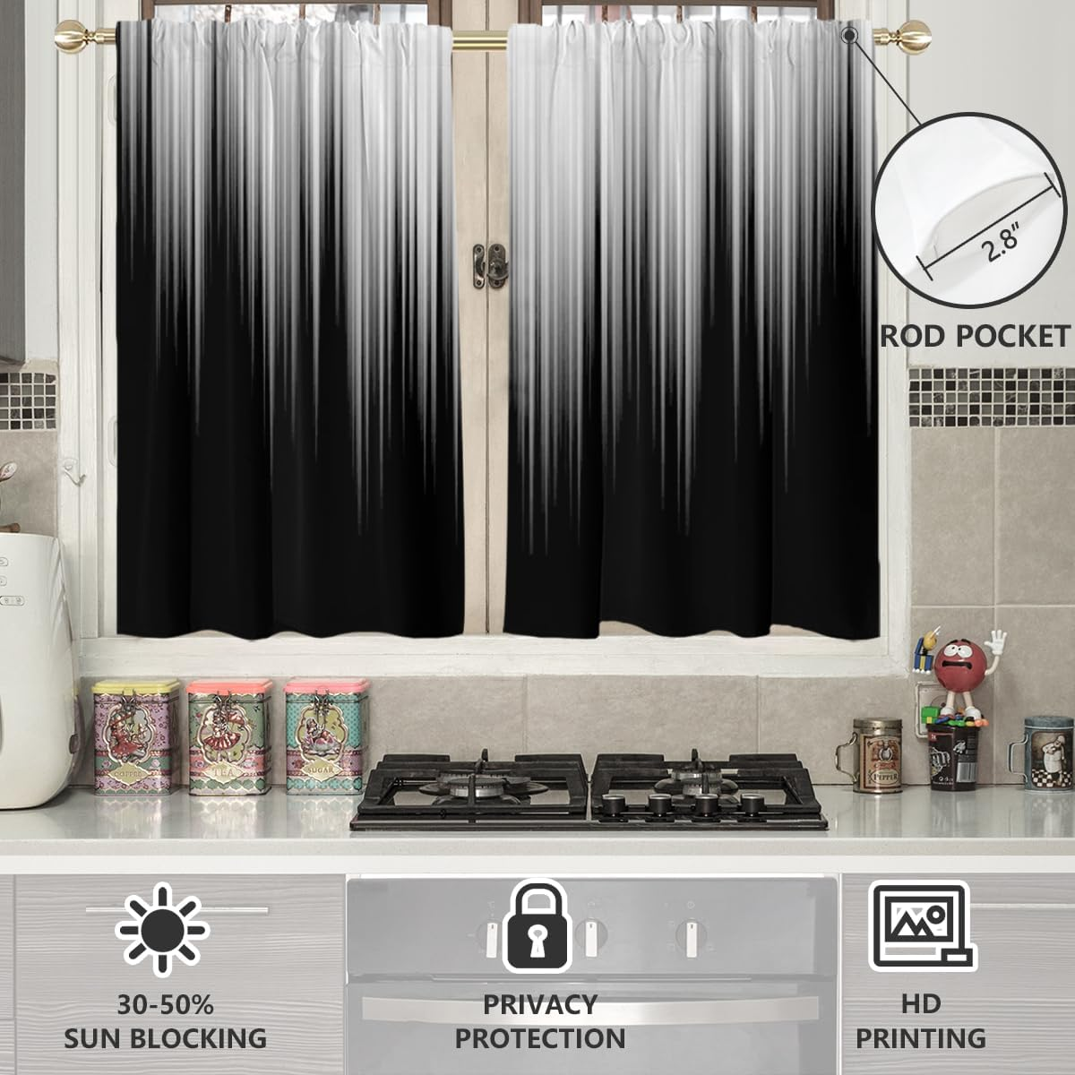 Rod Pocket: Easy to slide onto most standard curtain rods. No hooks or rings needed.