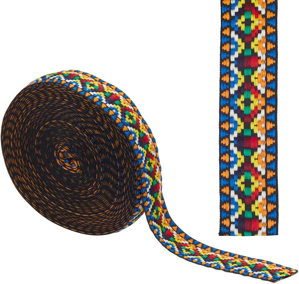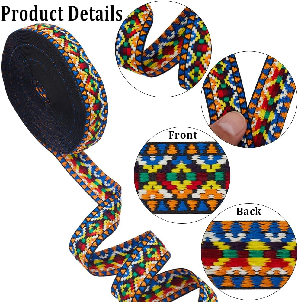 Enhance your DIY projects with this exquisite 10-yard embroidered jacquard ribbon trim. Designed in a vintage ethnic style, this ribbon adds elegance and charm to garments, home décor, and craft projects.