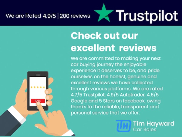 VIEWING BY APPOINTMENT ONLY.Rated 4.9/5 Trustpilot. Welcome to Tim Hayward Car Sales, your choice for quality vehicles. Our mission is to simplify your car buying journey and to make it as stress-free and as straightforward as possible without any of the unnecessary sales pressure. A refreshingly modern and transparent strategy that results in our many five-star Trustpilot reviews! We pride ourselves on the level of trust built between ourselves and our customers that begins on our website. By displaying up to 100 H D images and in-depth details of each of our vehicles online, we give greater clarity, enabling you to make a confident decision whilst buying your next car. We always have a large selection of interesting, individually selected cars, at competitive prices, with prices checked daily, using algorithmic data procured from some of the largest digital companies in the industry.