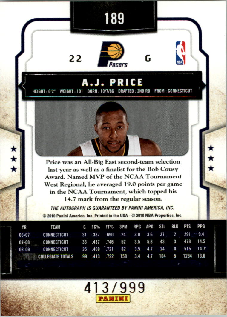 2009-10 Classics #189 A.J. Price Auto /999 RC - BSK