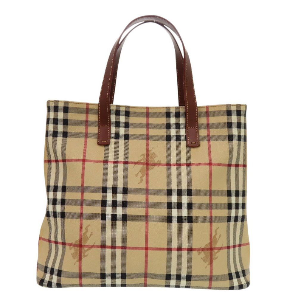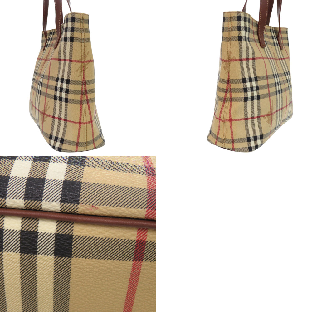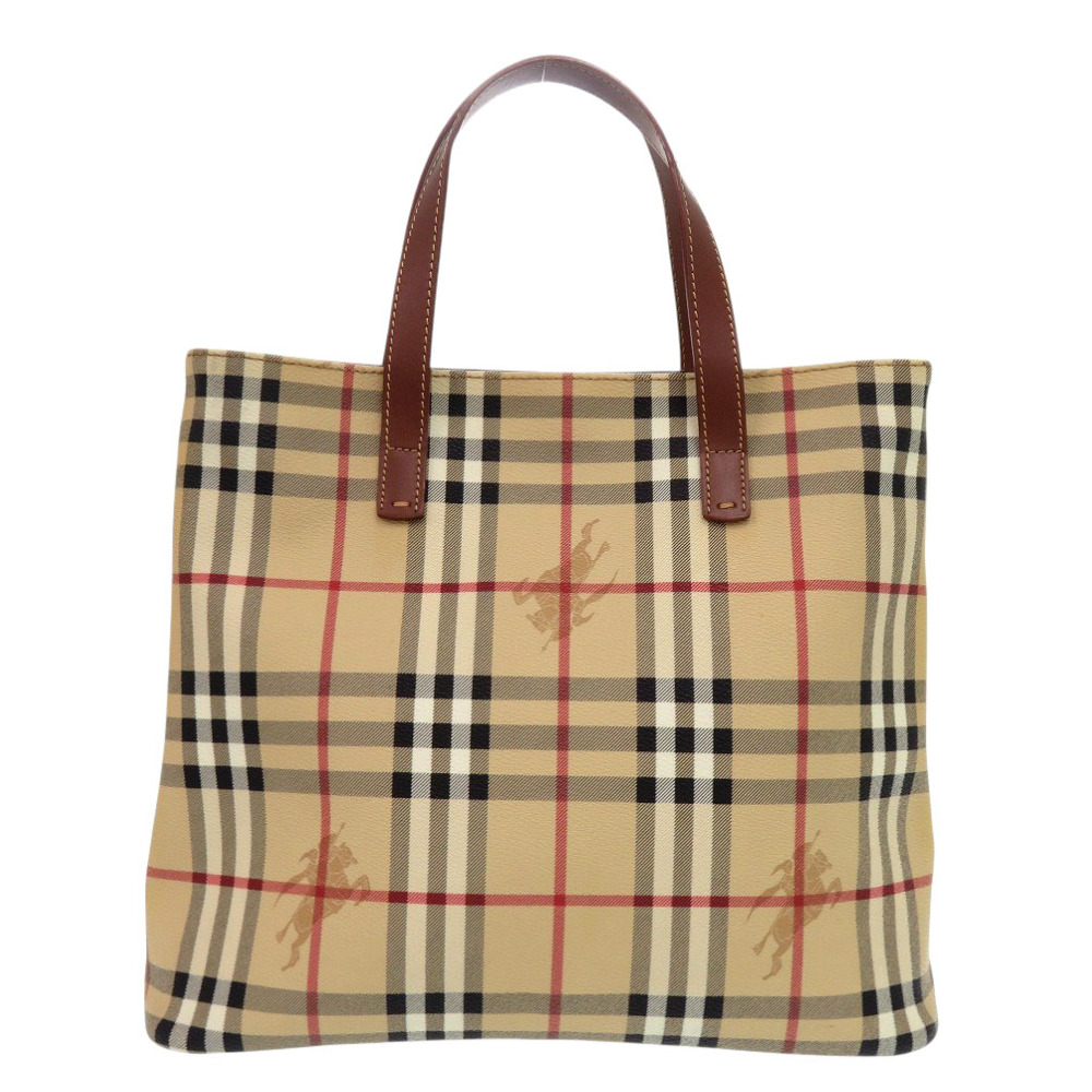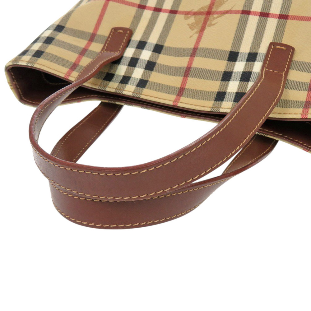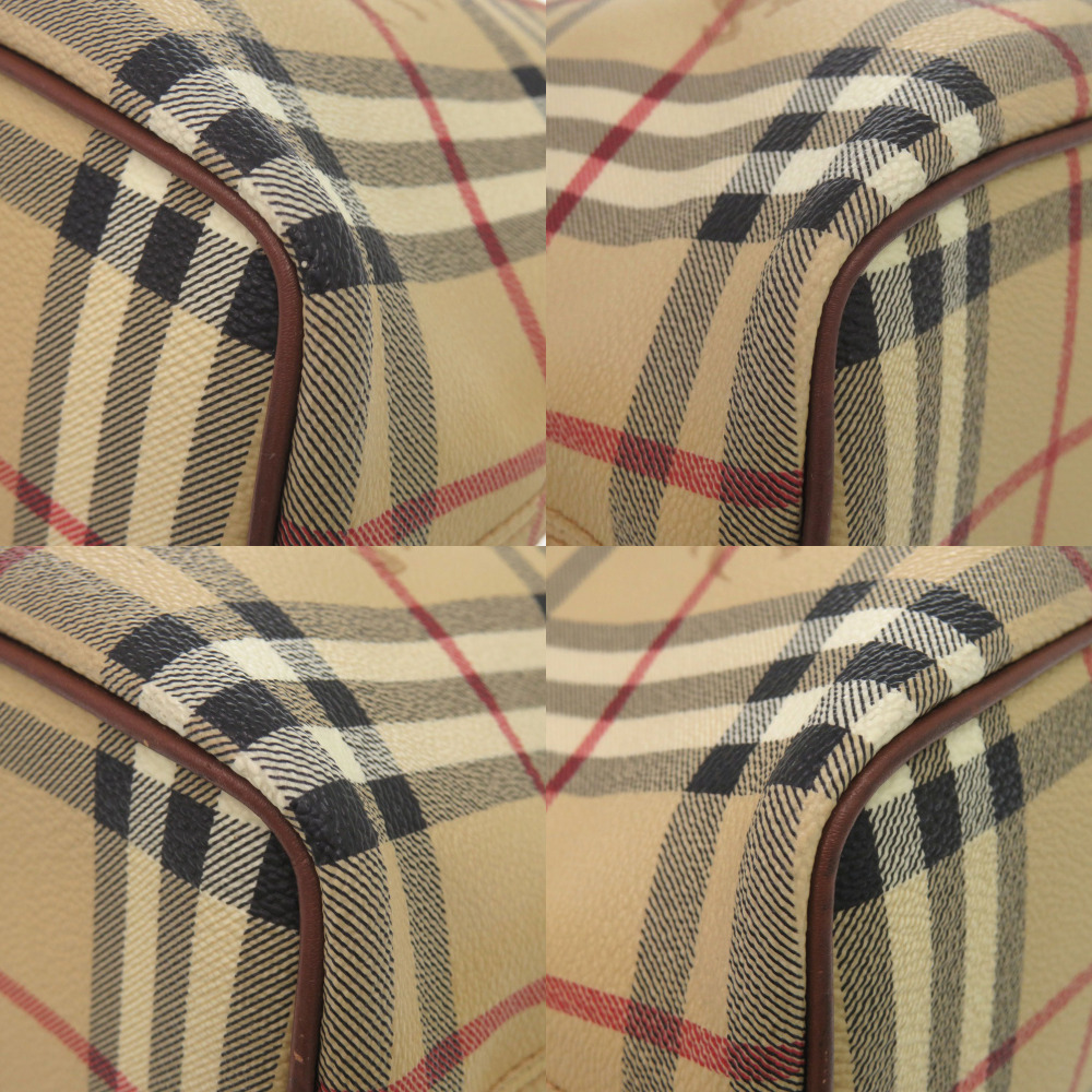 AUTHENTIC BURBERRY Shadow Horse Nova Check Beige Brown PVC Leather Hand Bag