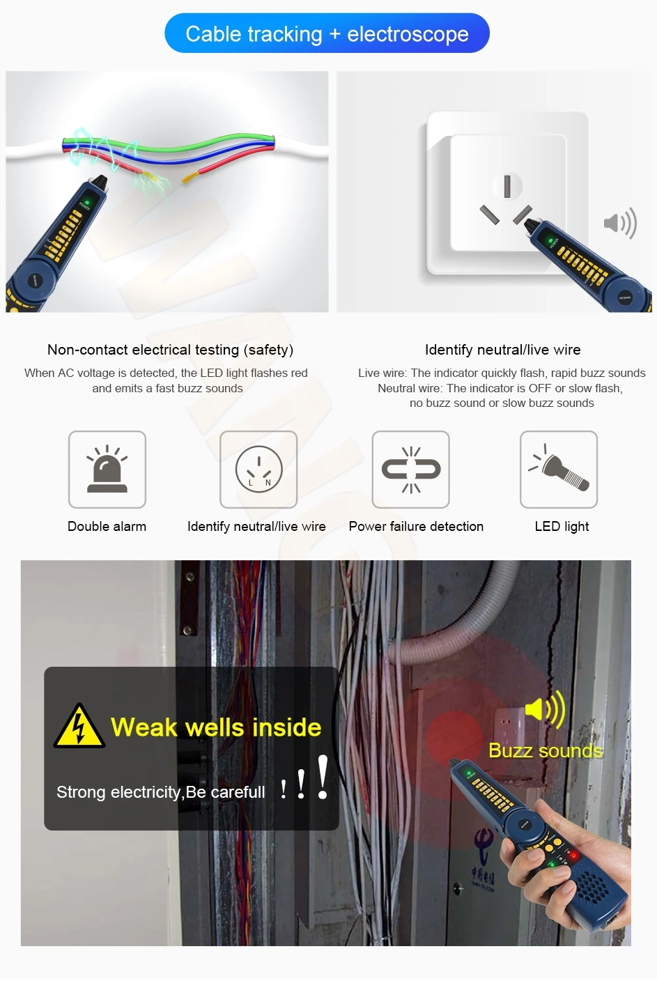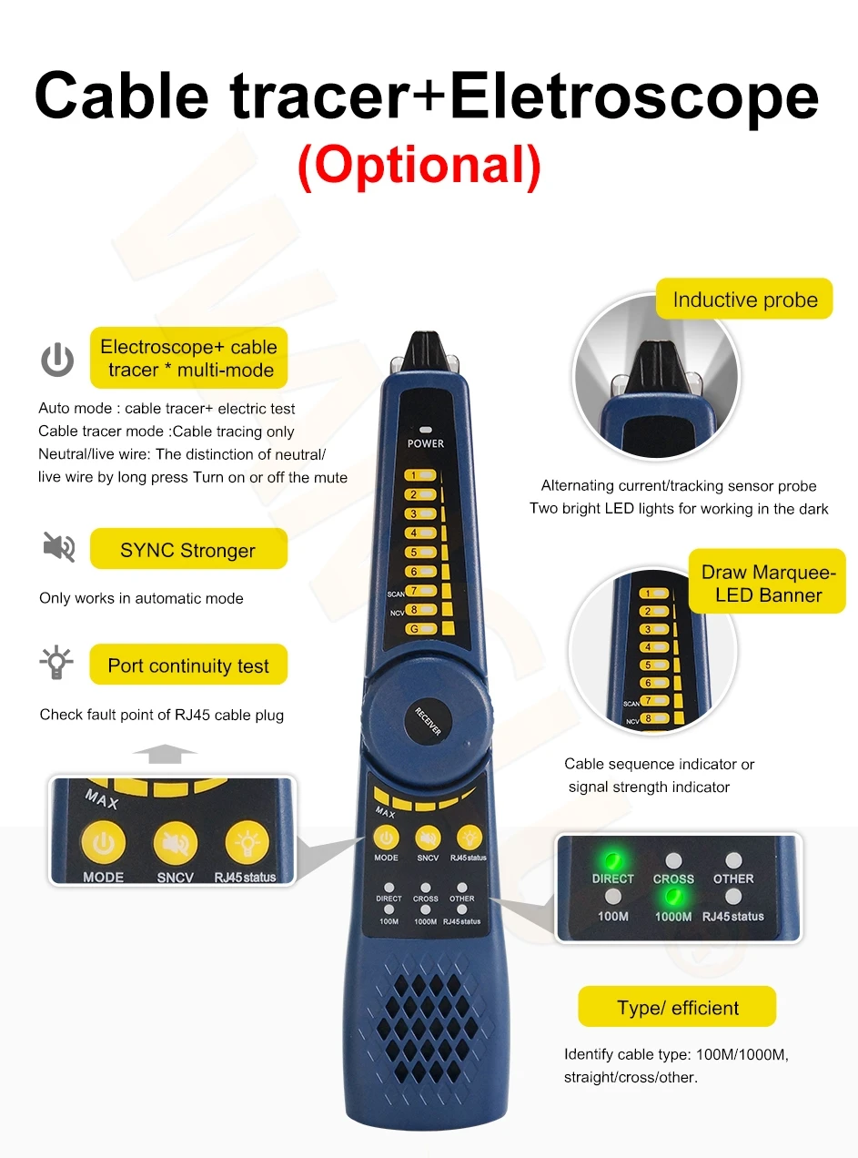 ● Upgraded Digital Cable tracer, search BNC cable, network cable and telephone cable from the mess cables, more accurately *(Optional)