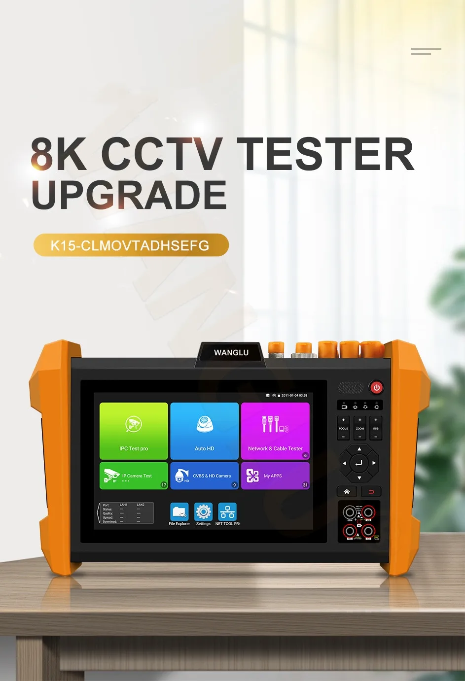 8K H.265 Multifunctional 7 inch CCTV Tester SFP optical module AHD CVI TVI SDI 8K IPC Camera Tester Color bar generator in one tester monitor