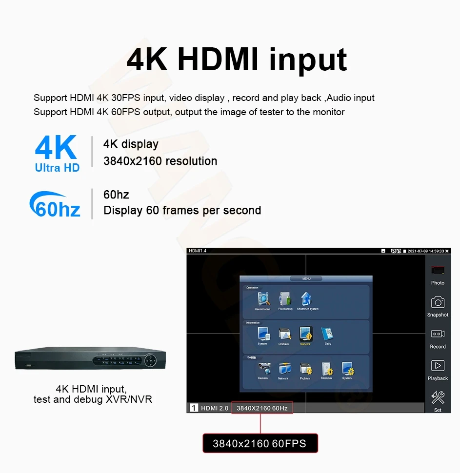 ● HDMI Input, up to 4K 30FPS, and support snapshot, video record & playback
