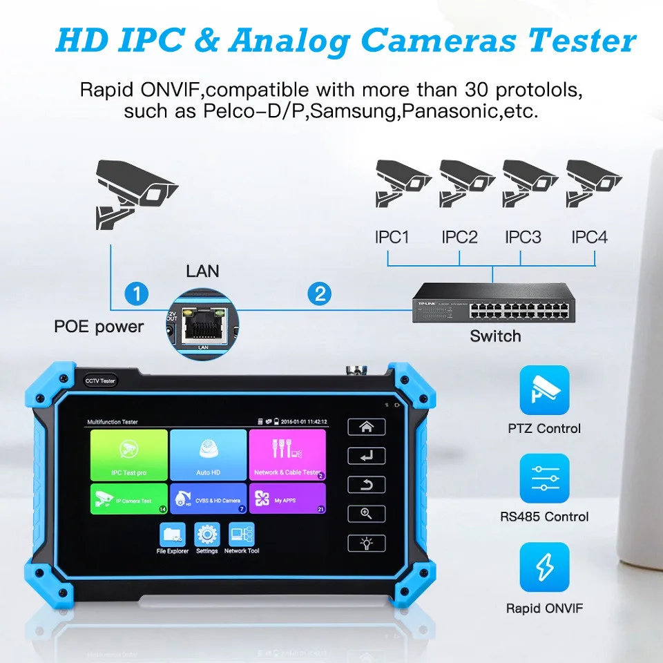 IPC-5200C/IPC-5100 CCTV Tester IP Tester 4K Monitor Testers HDMI VGA CCTV for IPC POE AHD CVI TVI SDI Cable Testing