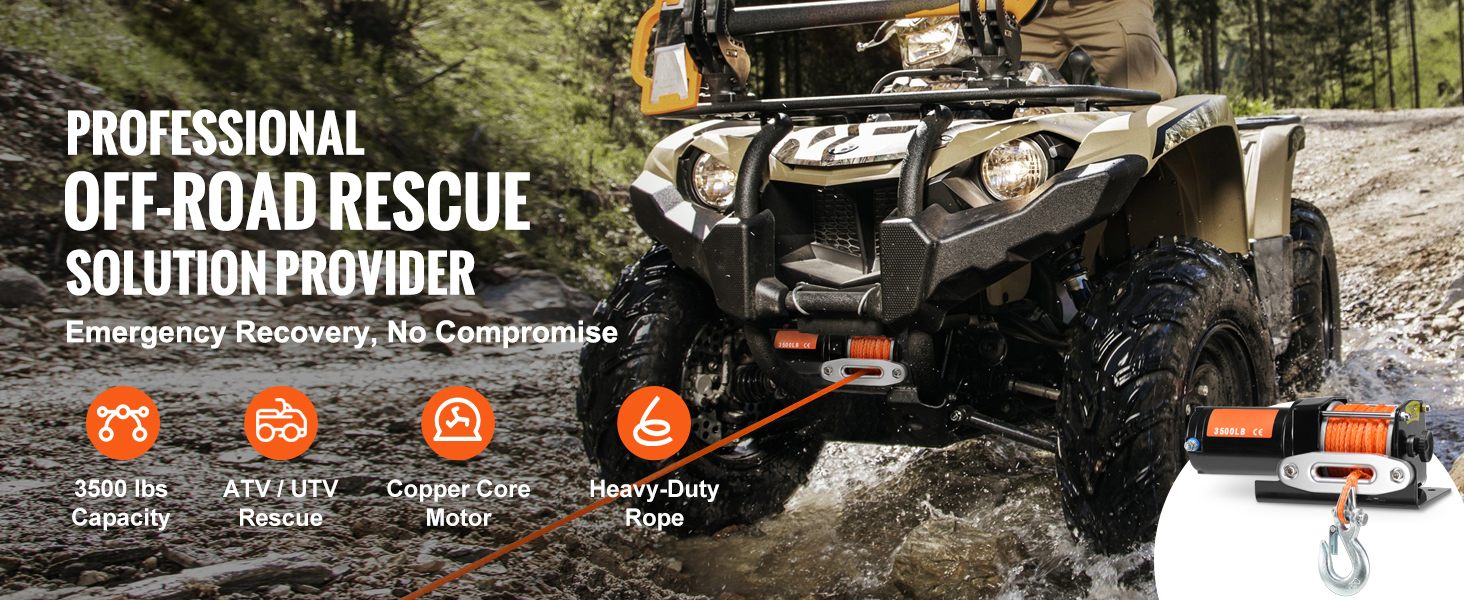 Tough, Reliable Pulling Power: With a 3500 lbs capacity, this winch delivers robust performance for off-road recovery. Perfect for ATVs and UTVs, it provides the strength to help you out of sticky situations like mud or rain, ensuring your adventure keeps moving.