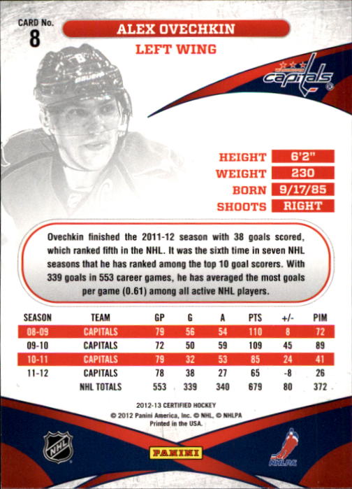 2012-13 Certified #8 Alex Ovechkin - HKY