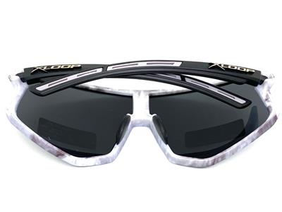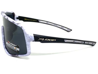 - Couleur du cadre: Cadre de camouflage léger avec des bras noirs décorés d'un logo en boucle X en argent de chaque côté des temples