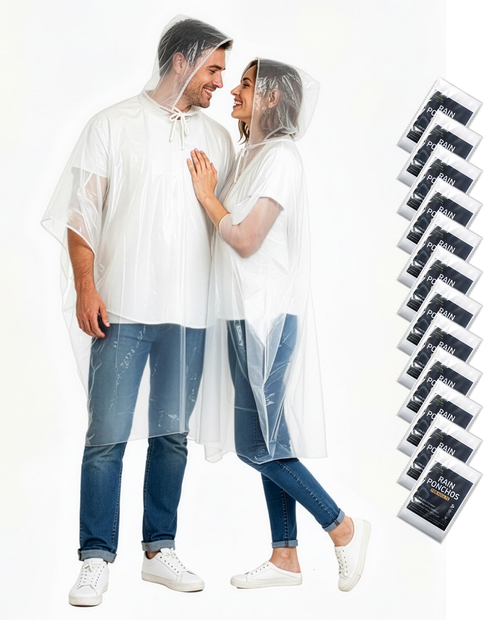 Hitituto Rain Ponchos Family Pack – Disposable One Size, Adults Clear 12pcs
