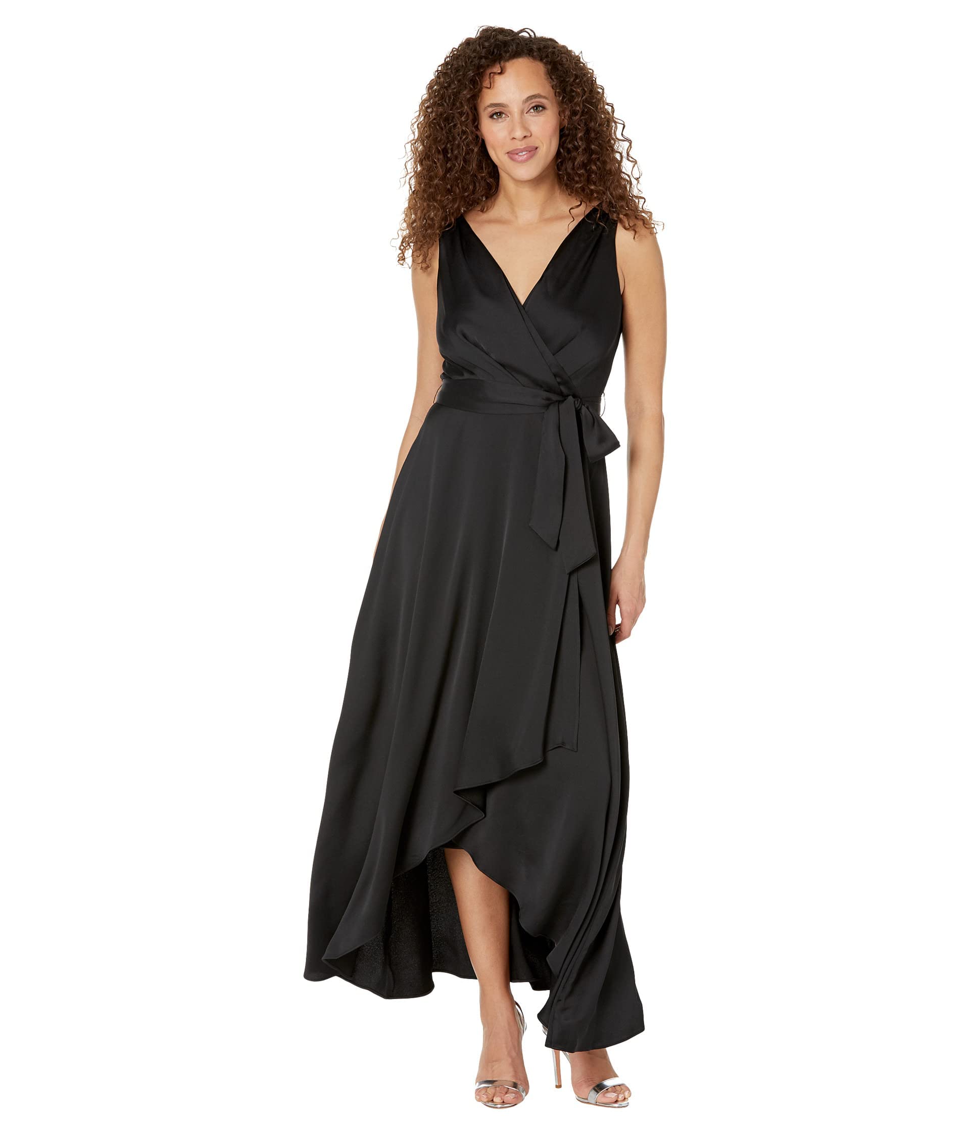 Look gorgeous wearing the DKNY Sleeveless Double V Faux Wrap Gown and slay the fashion trends. Pullover style. Floor-length formal gown. Lined. Sleeveless gown with a V-neckline. Center-back zippered closure. Self-tie closure on the waist for an enhanced look and fit.