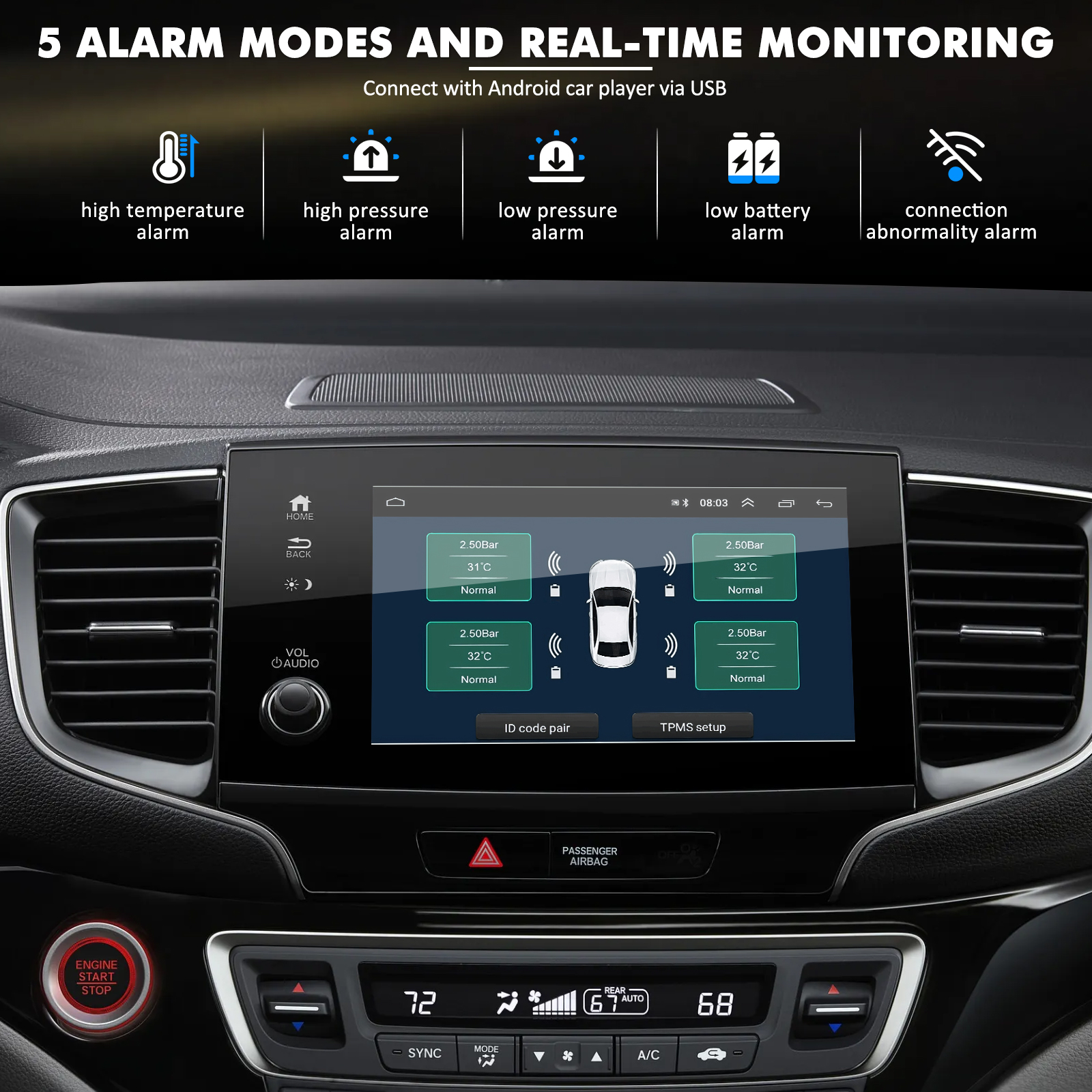 TPMS Reifendruckkontrollsystem für Android Navigation mit 4 externen Sensoren