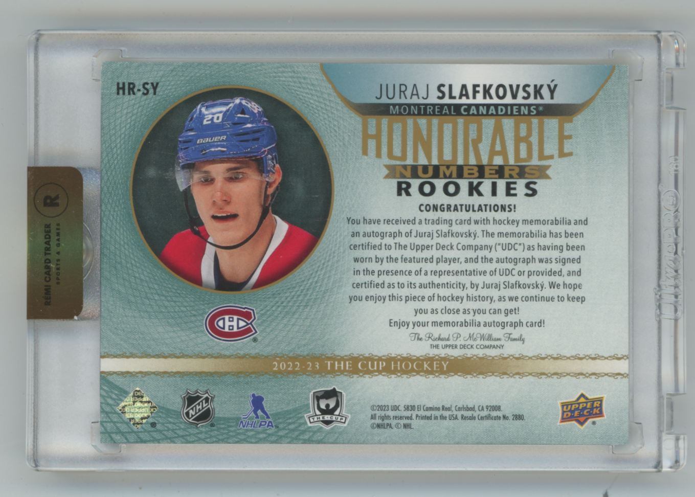 2022-23 The Cup Honorable Numbers Rookies Patch Auto /20 Juraj Slafkovsky Rookie
