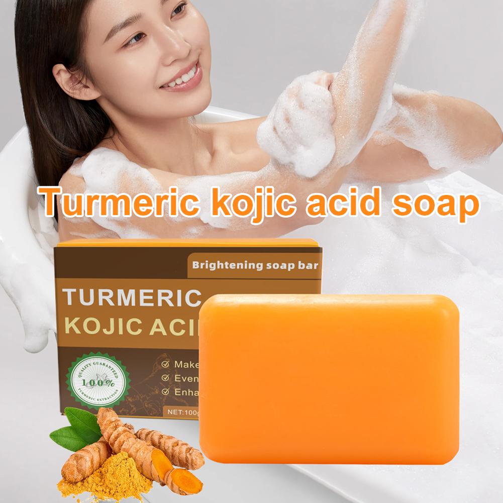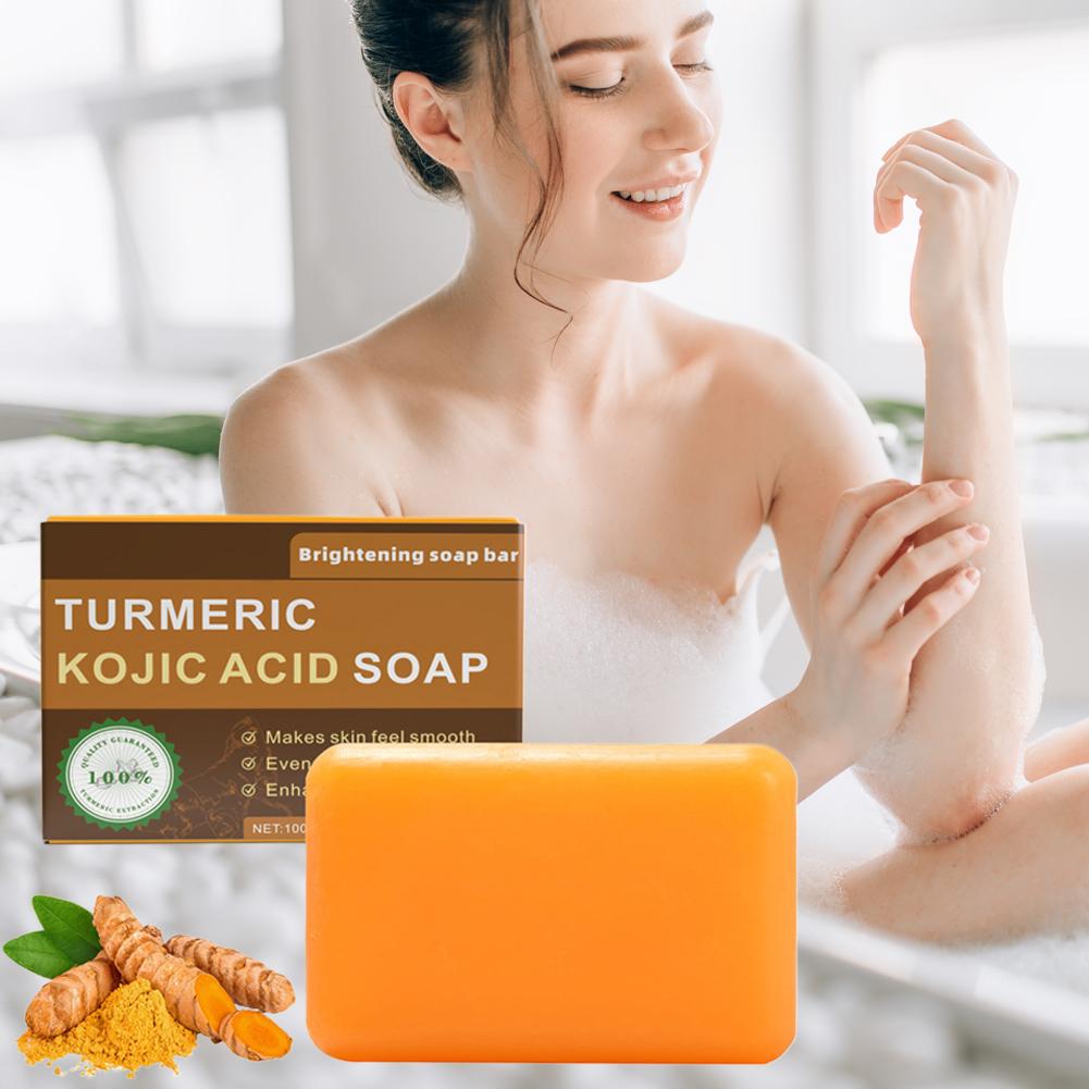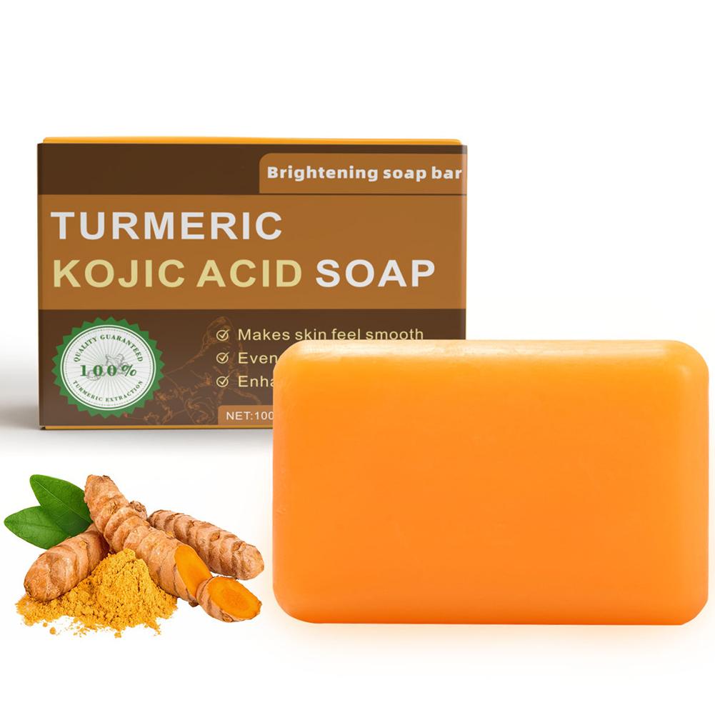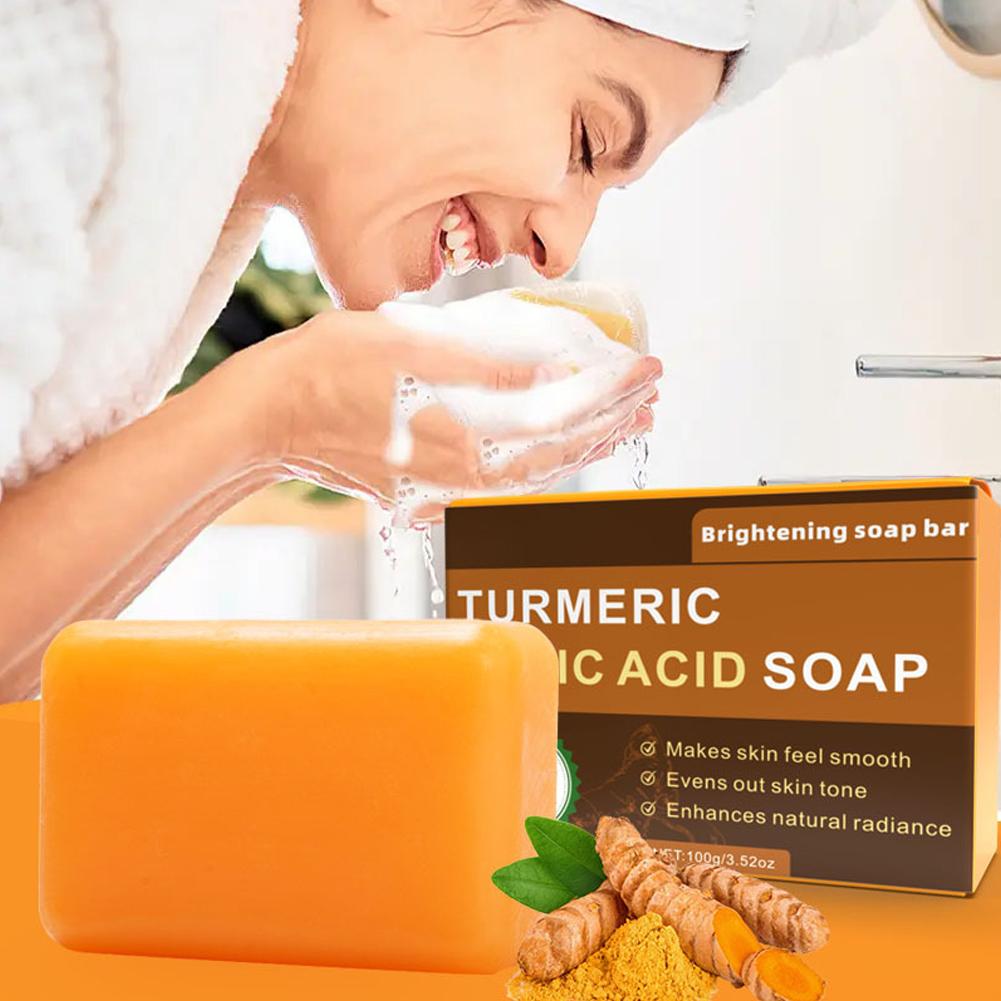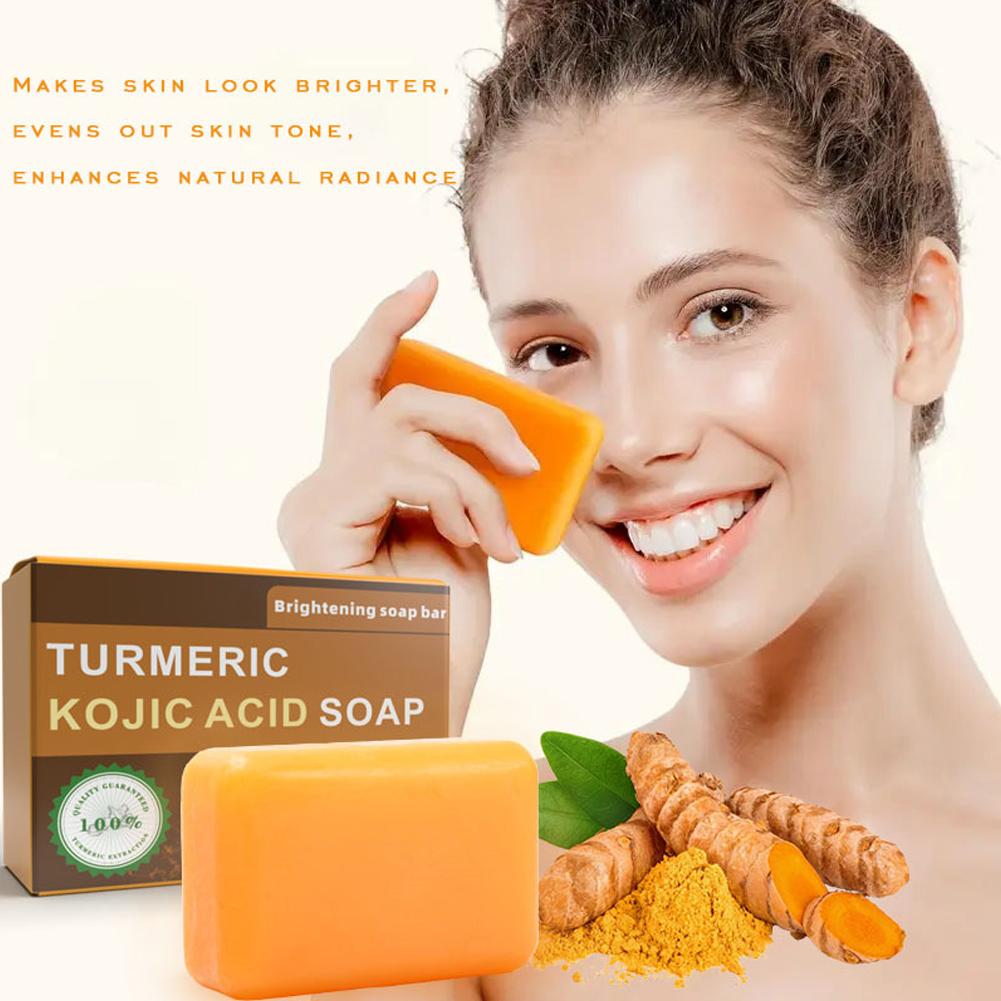 1. Advanced Formula: Our brightening soap bar features a potent blend of Turmeric and Kojic Acid, complemented by nourishing ingredients such as Shea Butter, Vitamin C, Retinol, Vitamin E, Hyaluronic Acid, and Olive Oil, designed to promote a clearer, more radiant complexion.