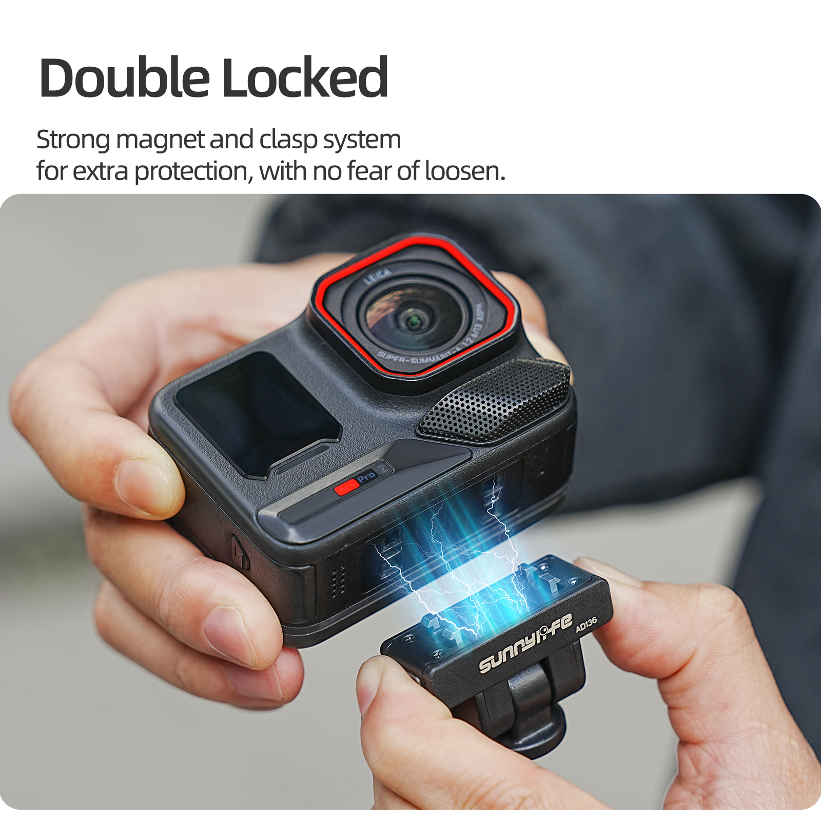 Magnetic clamp with claw mount for double the stability. Powerful magnet paired with aluminum alloy claw mount ensures shake-free action shots.