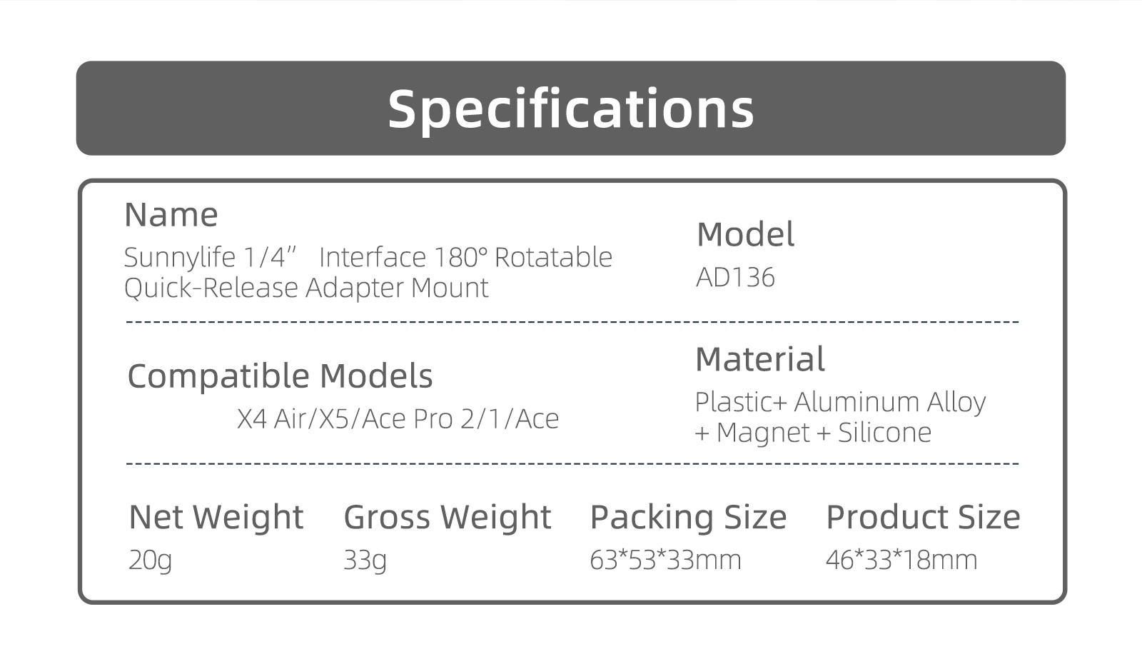 Product Name: 1/4" Thread 180° Adjustable Magnetic Quick-Release Adapter