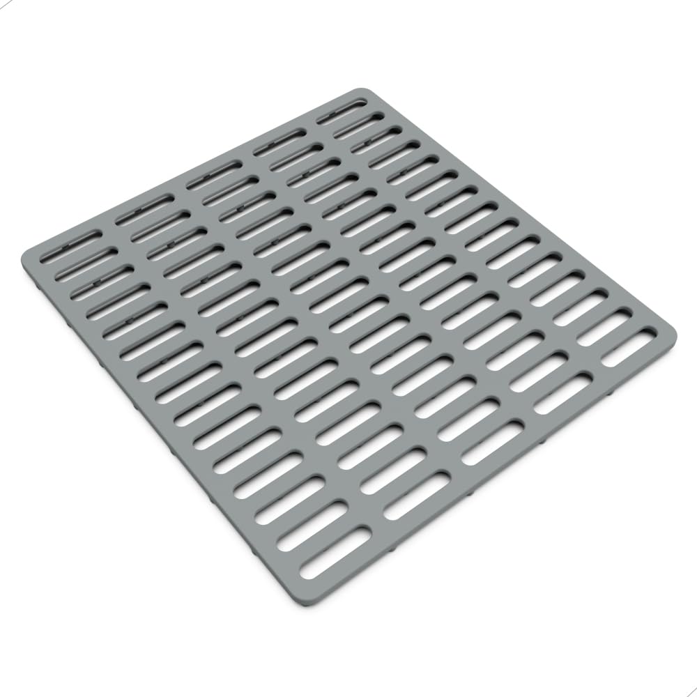 Raised Feet and Perfect Size: It rests on multiple raised feet, so it does not get slimy like the old-fashioned mats that sit flat in the sink. The mat size is 12.2 x 11.34 inches, which fits perfectly in a small sink, but not in a large one.