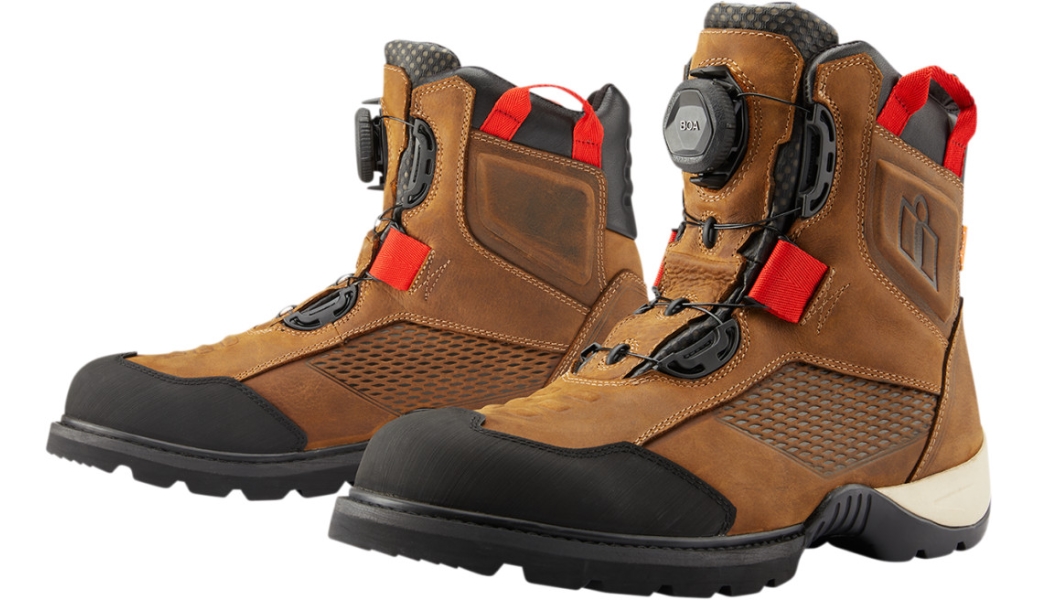Icon Stormhawk Waterproof Boots 3403-1165 From our rain-soaked rides in Portland, Oregon, comes the ICON Stormhawk Waterproof boot. The premium leather upper features a water-resistant finish combined with an eVent Waterproof/Breathable liner for the ultimate in four-season comfort and function. A highly-lugged outsole provides certified motorcycle performance with an oil-resistant rubber. The BOA lacing system allows for easy on and off while allowing a custom fit. Internally the Stormhawk features dual D3O inserts to provide ankle coverage. Reinforced rubber toe-cap, reflective accents, and shifter interface nubs complete the all-purpose, overachieving, any-condition Stormhawk Waterproof riding boot. FEATURES: D30 Ankle Inserts, eVent Waterproof/Breathable Membrane, BOA Lacing System, Durable Rubber Toe Overlay, Reflective Heel Insert, Open-cell PU Insole for comfort MATERIAL: Water-Resistant Leather Upper CERTIFICATION: Tested and Certified to Standard - EN 13634:2017