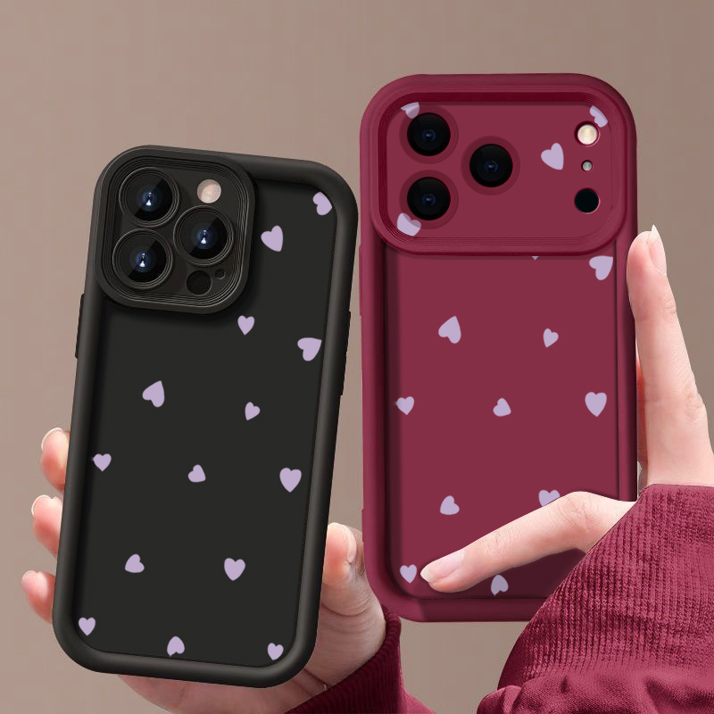 Case For iPhone 17 16 Pro Max Air 15 14 13 12 LOVE Heart Pattern Silicone Cover