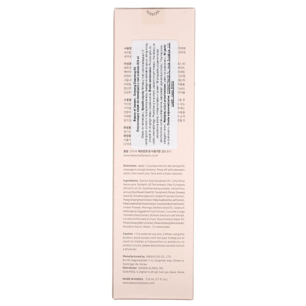 Beauty of Joseon Ginseng Cleansing Oil ist ein Make-up-Entferneröl auf Basis von Sojaöl . Dieses Öl ist das leichteste und dennoch höchst wirksame Öl zur Entfernung von Unreinheiten, überschüssigem Talg und Make-up-Rückständen von der Haut. Angereichert mit Ginsengsamenöl verleiht es einen wunderschönen grasigen Duft. Dank seiner milden Formel verursacht es keine Reizungen und ist für alle Hauttypen, auch für empfindliche Haut, geeignet.