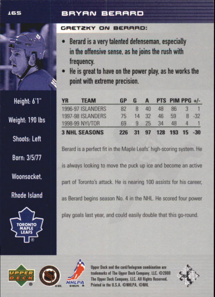 1999-00 Wayne Gretzky Hockey #165 Bryan Berard - HKY