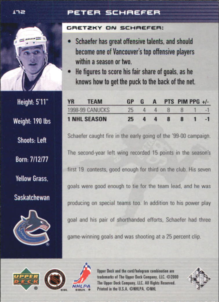1999-00 Wayne Gretzky Hockey #172 Peter Schaefer - HKY