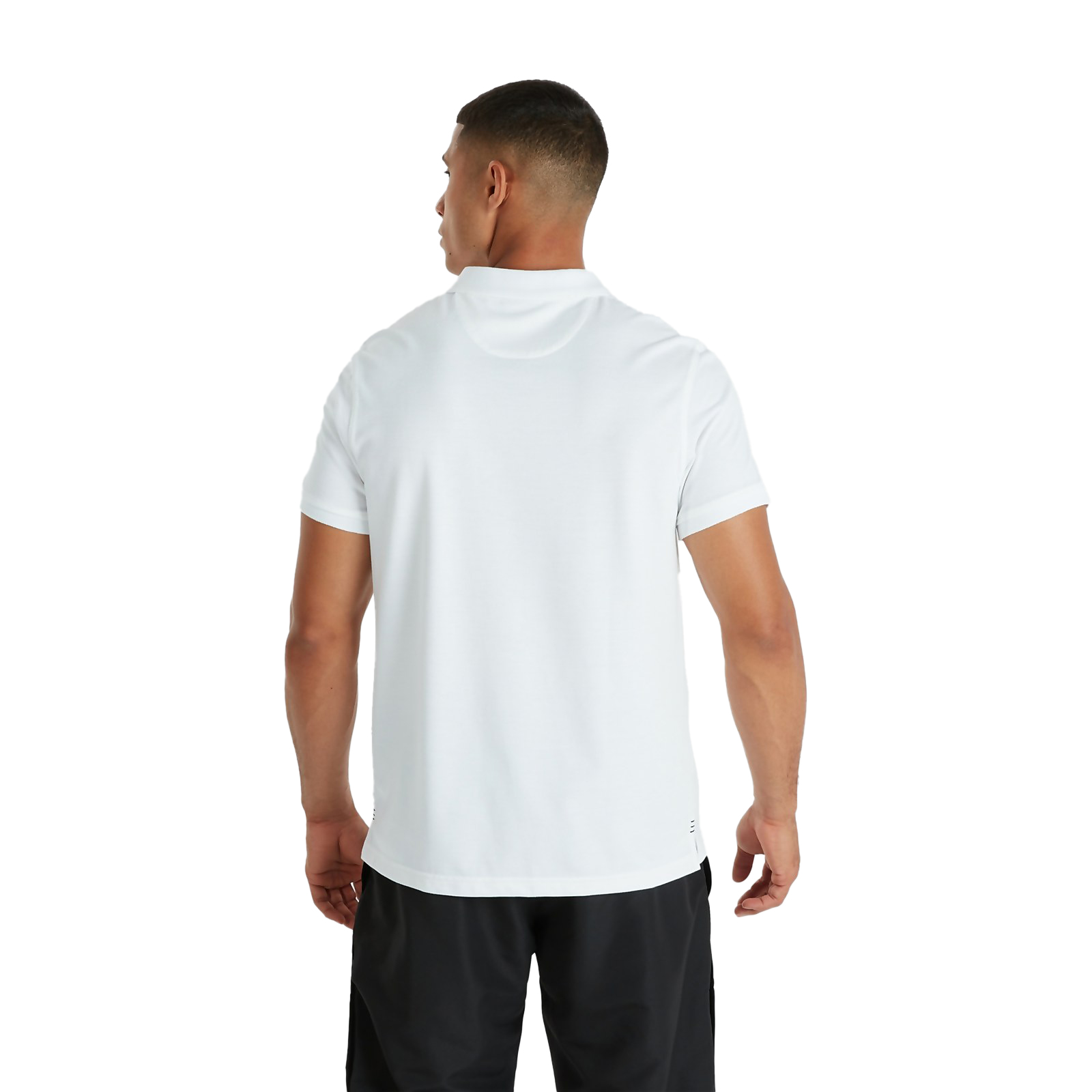 Col et ourlets manches côtelés. Manches courtes. Patte de col 3 boutons. Fentes latérales. Logo de la marque brodé. Fermeture à boutons. Composition: coton, polyester.