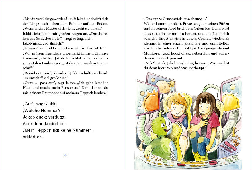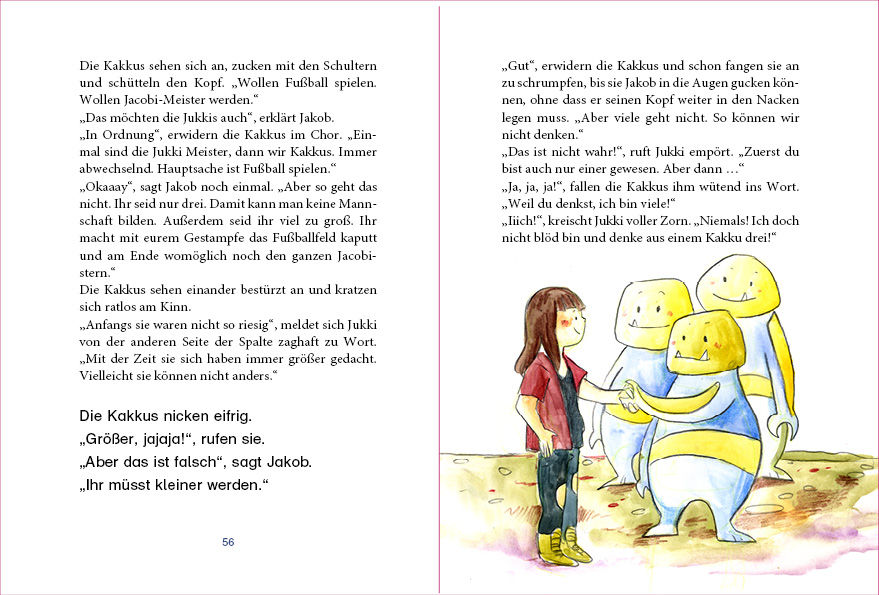 Jakob darf auf dem Pausenhof nie bei den großen Jungs mitkicken. Dabei ist Fußball spielen für ihn das Größte. Bis er eines Tages von einem Außerirdischen auf einen fernen Planeten entführt wird. Dort draußen im Welltall hat man nämlich schon viel von Jakobs Fußballtalent gehört und er wird dringend gebraucht. Schließlich wollen die Jukkis die Fußball-Meisterschaft auf ihrem Planeten gewinnen . . .