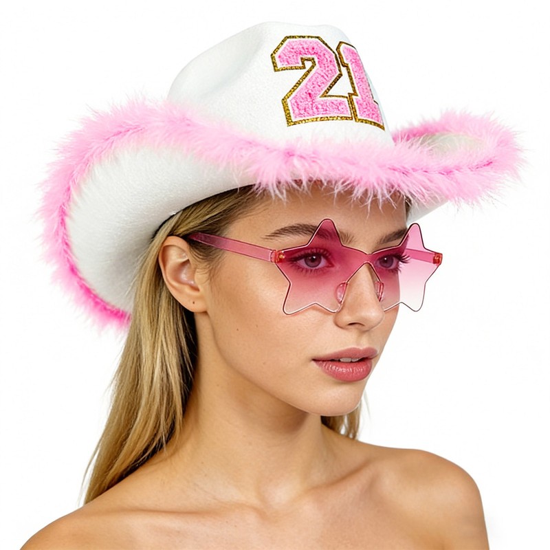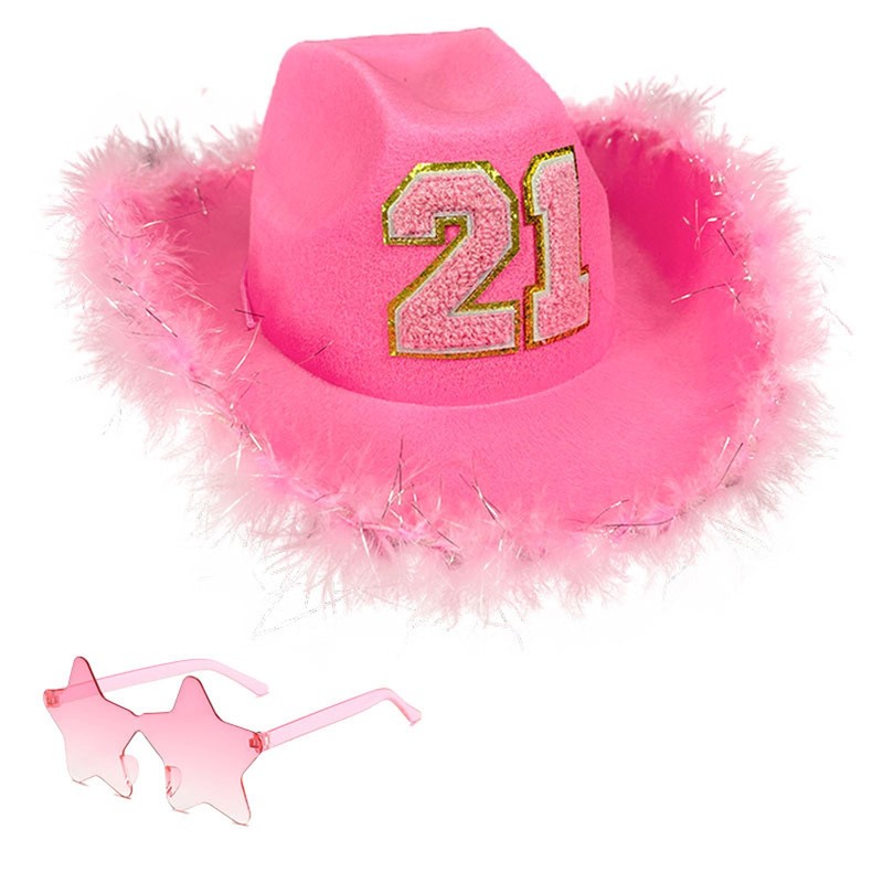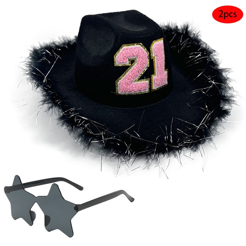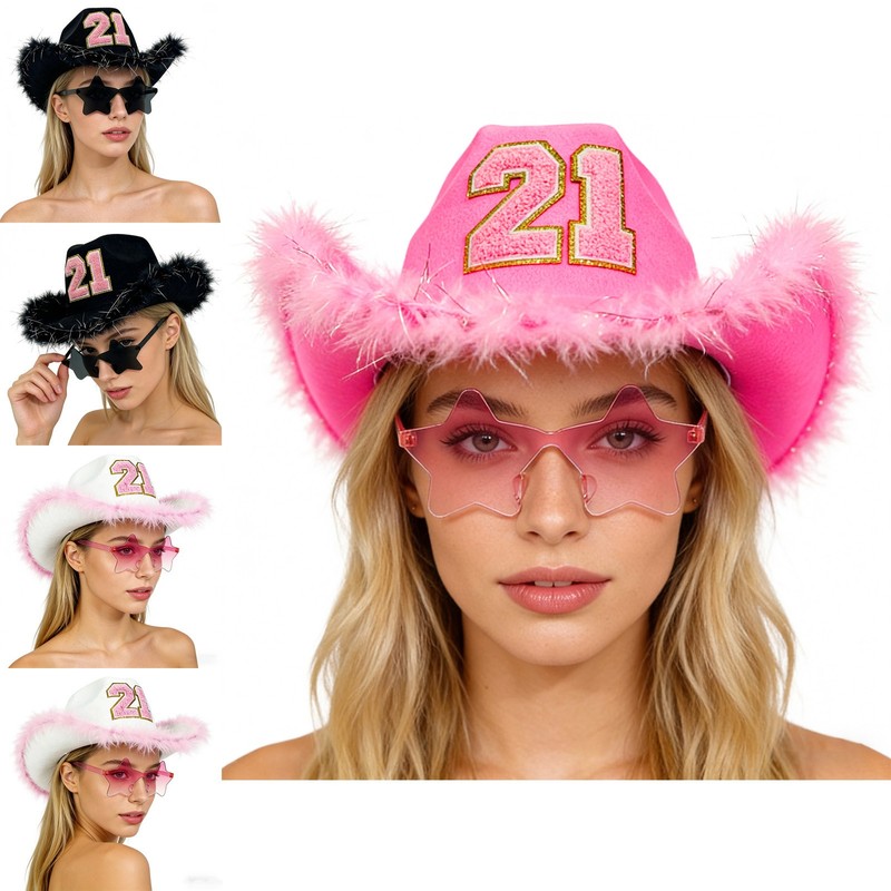 Set Include: 1Pc Cowboy Hat, 1Pc Star Glasses