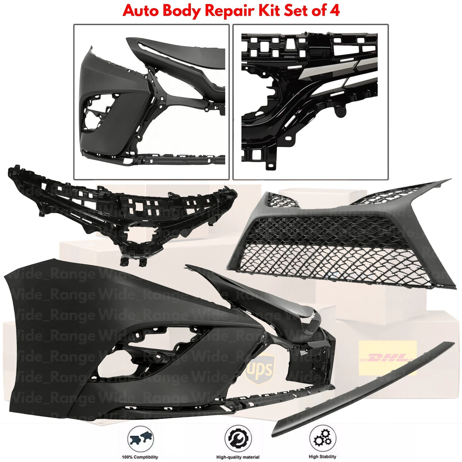 | Items Included | (1) Front Bumper Cover (1) Grille Assembly (1) Bumper Molding (1) Lower Grille |