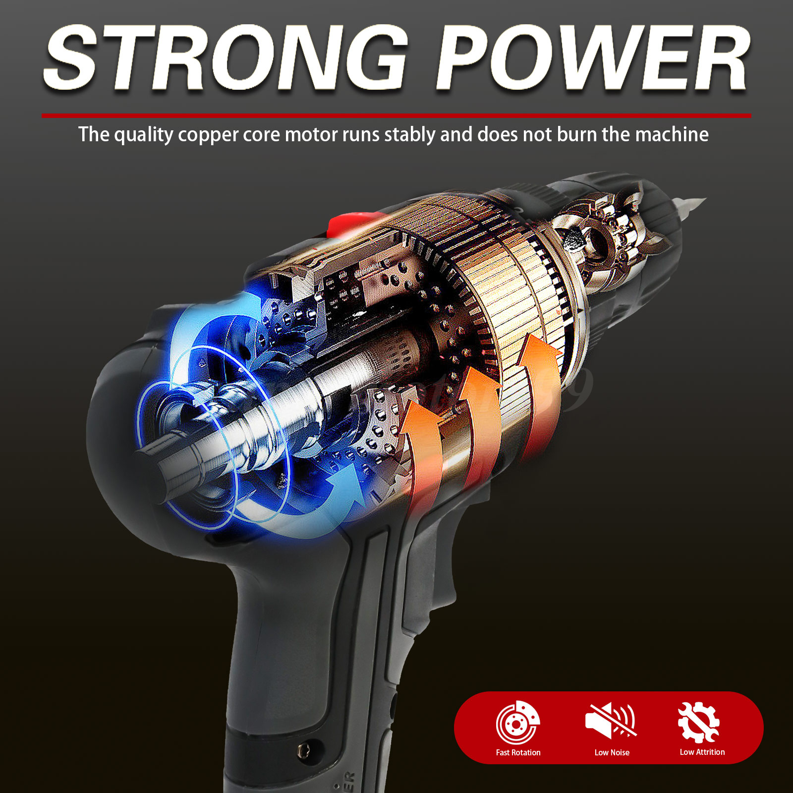 【All-Copper Motor, Powerful Performance】Equipped with a high-quality all-copper motor, ensuring durability and unmatched power. It maintains stability even at high speeds, ensuring each drill or screw tightening is accurate and efficient.