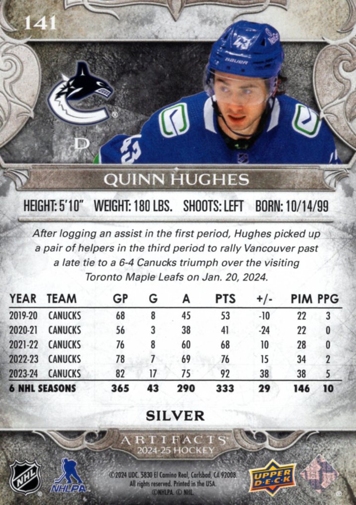 2024-25 Artifacts #141 Quinn Hughes /699 - HKY
