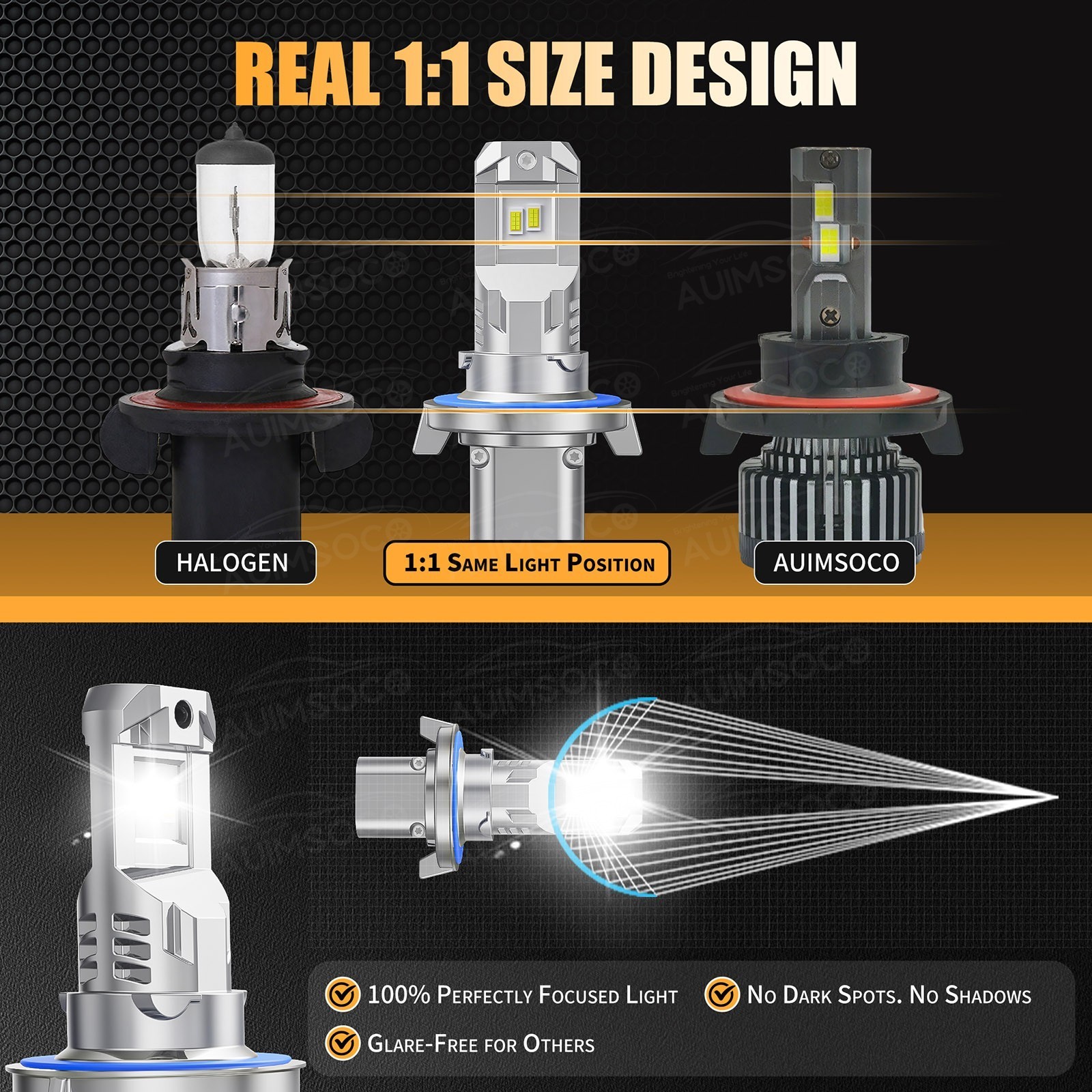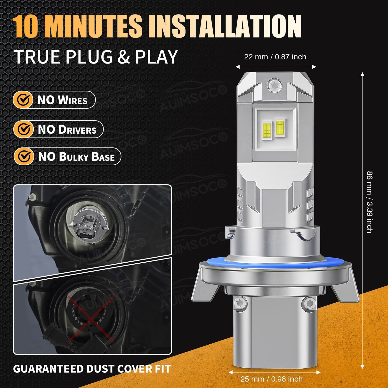 The whole aviation aluminum lamp body, built-in single copper tube, and IP67 waterproof rate ensure AUIMSOCO LED bulbs 50,000 hours of continuous lighting, even on rainy days or other bad weather.