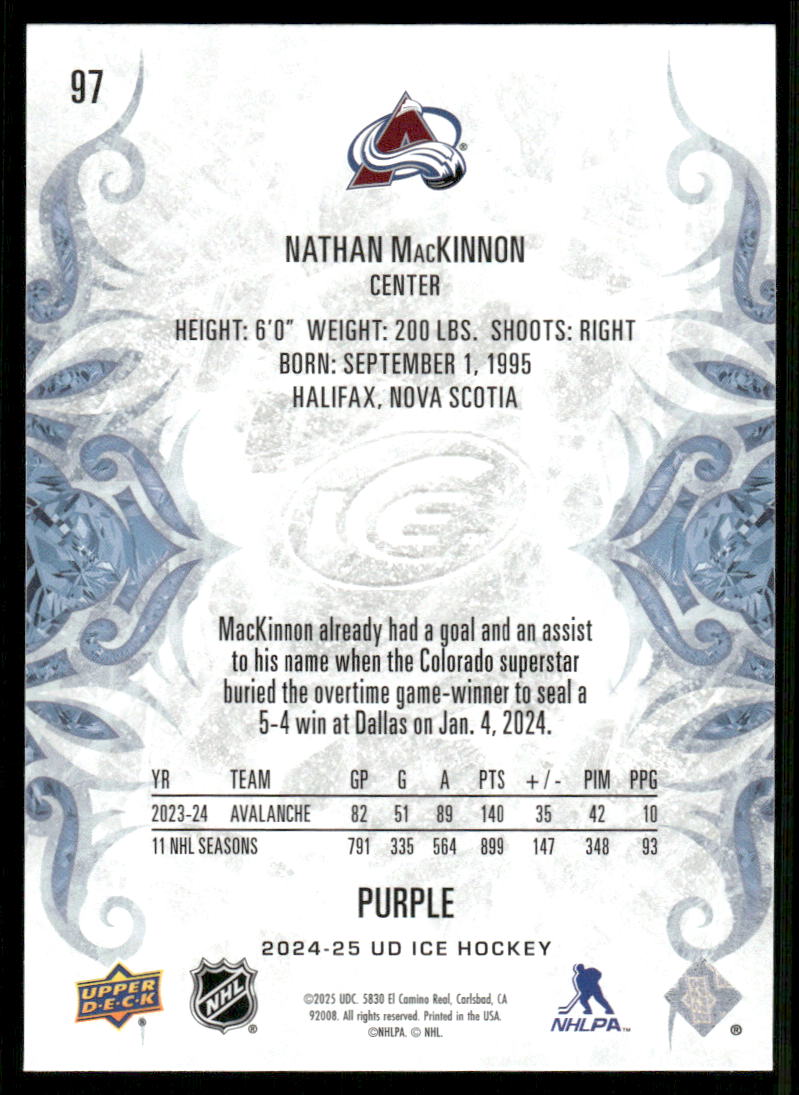 2024-25 Upper Deck Ice Purple #97 Nathan MacKinnon - HKY