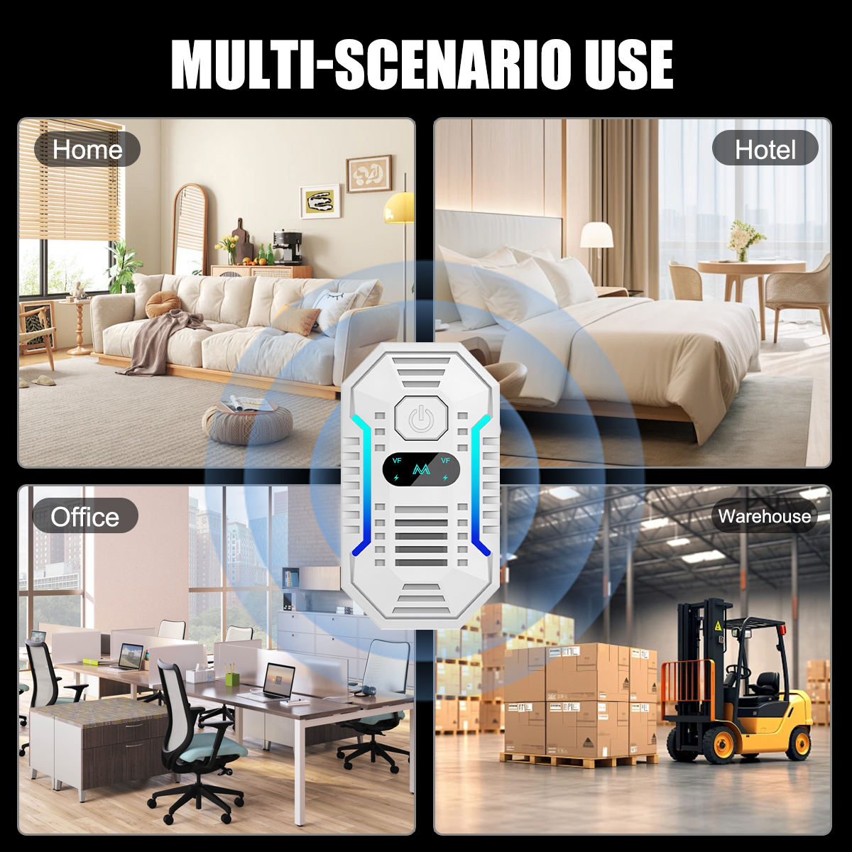 4.Since ultrasound can't pass through walls, it is recommended to use multiple devices in larger areas!