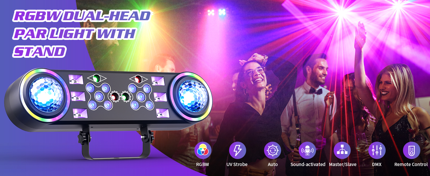 3. Versatile Control Options – Supports sound activation, master/slave mode, DMX, remote control, and self-running modes for seamless operation.
