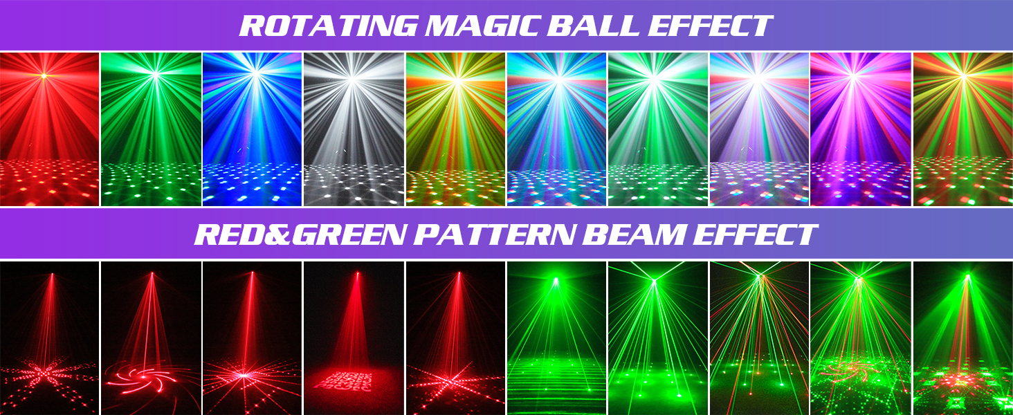 1. Dynamic Multi-Effect Lighting – Combines magic ball, water ripple, color mixing, and laser effects, each independently controllable for endless creative combinations.