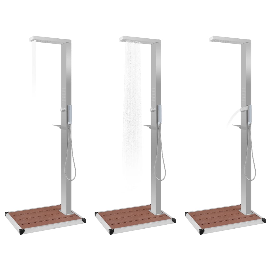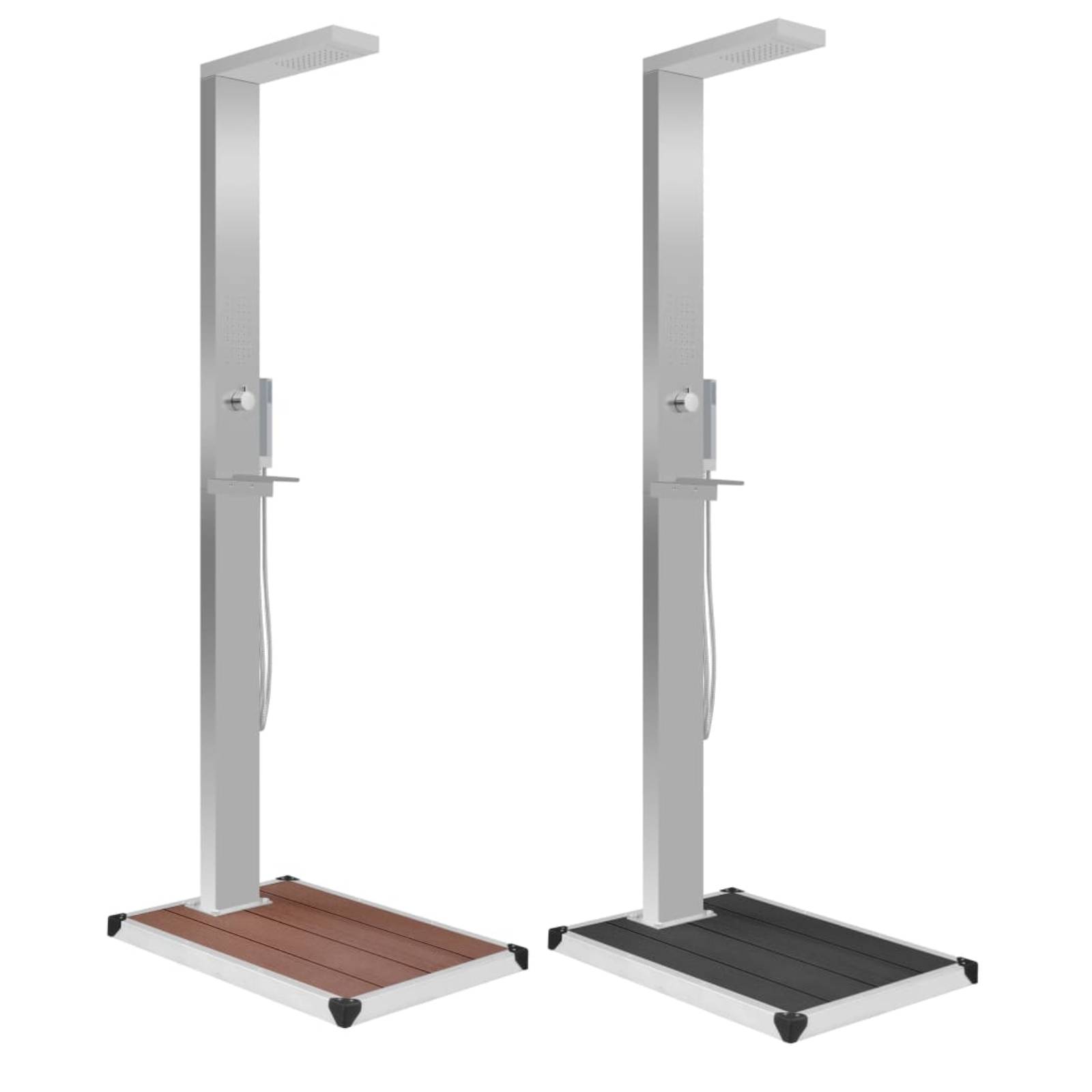 Gartendusche mit Bodenelement WPC Edelstahl Pooldusche Außendusche Campingdusche