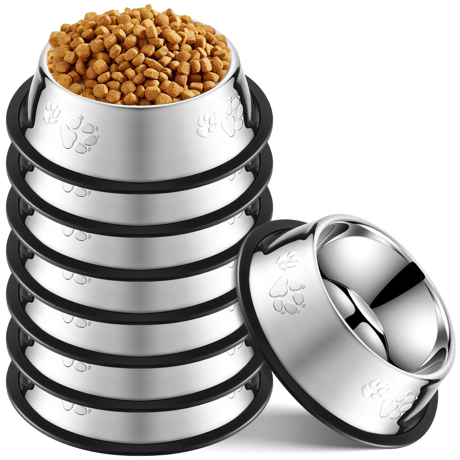Tanlade 8 Pack Stainless Steel Dog Bowls Metal with Rubber 10.1 oz, silver